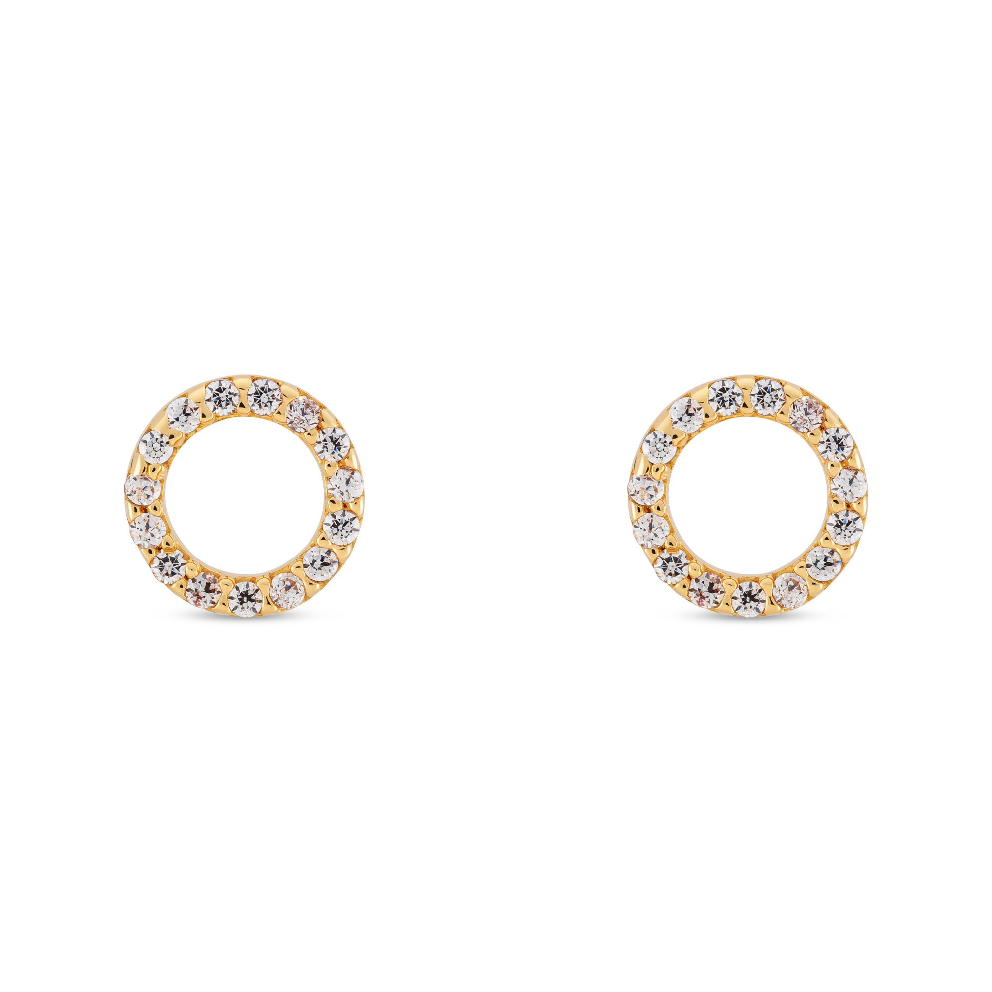 Questi orecchini a perno firmati Studio Marquise in oro giallo 18 carati hanno un design semplice, incastonati con zirconi sfaccettati disposti ad anello. I due spinotti raffinati si chiudono con chiusure a farfalla.