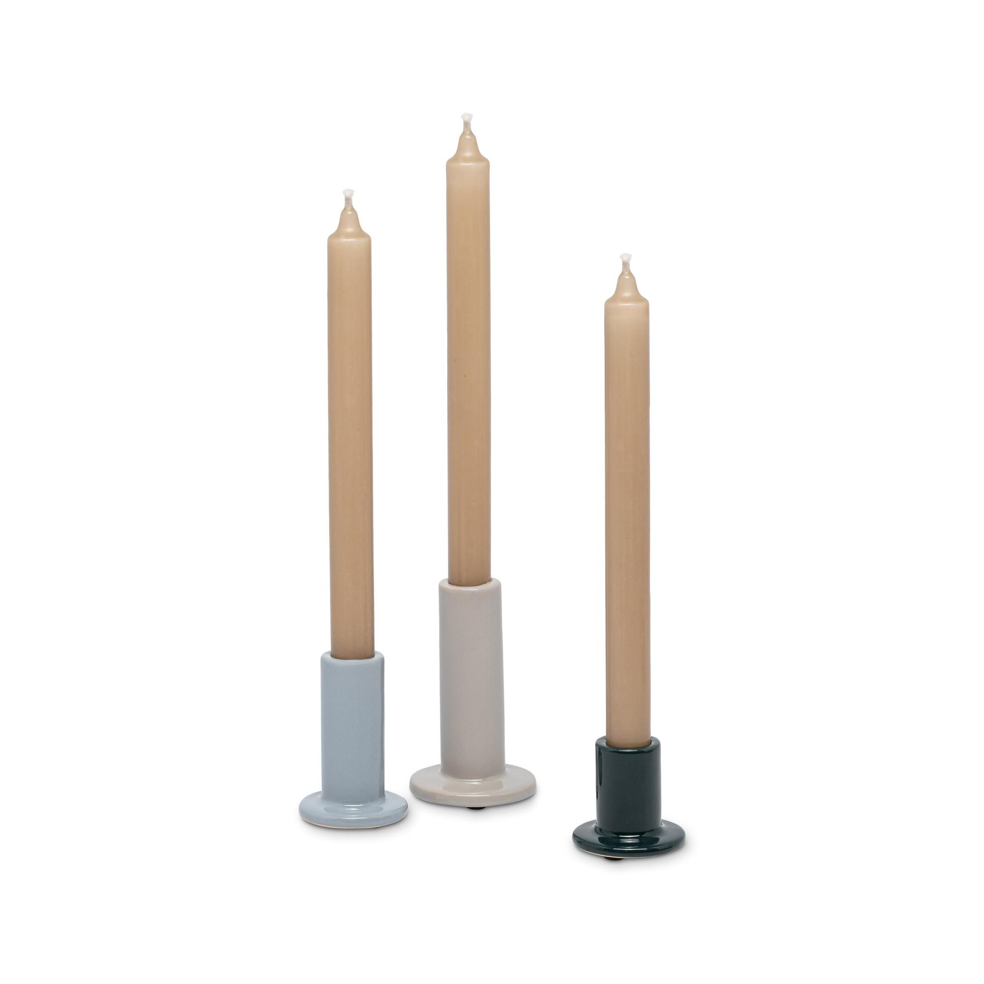 "Questo set di 3 portacandele ""Acajou"" firmato Manor combina ceramica smaltata lucida con una forma chiara. Gli elementi antiscivolo sul fondo garantiscono una posizione sicura su diverse superfici. Il set comprende tre dimensioni: Piccolo: 2,2 × 2,2 × 5 cm Medio: 5,5 × 5,5 × 8 cm Grande: 5,5 × 5,5 × 12 cm "