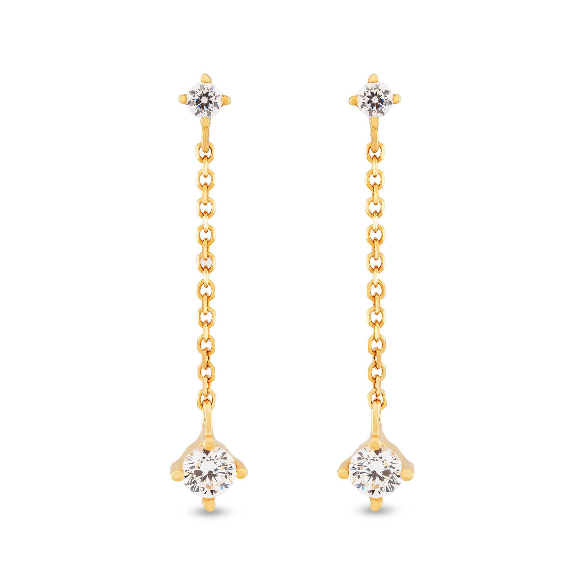 Questi orecchini in filigrana firmati L'Atelier Gold 18 Karat by Manor combinano un'eleganza sobria con dettagli finemente lavorati. Sulla classica chiusura a incastro si trova un piccolo zircone, seguito da una delicata catena in oro giallo 18 carati. La chiusura è costituita da uno zircone più grande come ciondolo, che brilla in una montatura a griffe traslucida e dona al design una leggerezza raffinata.