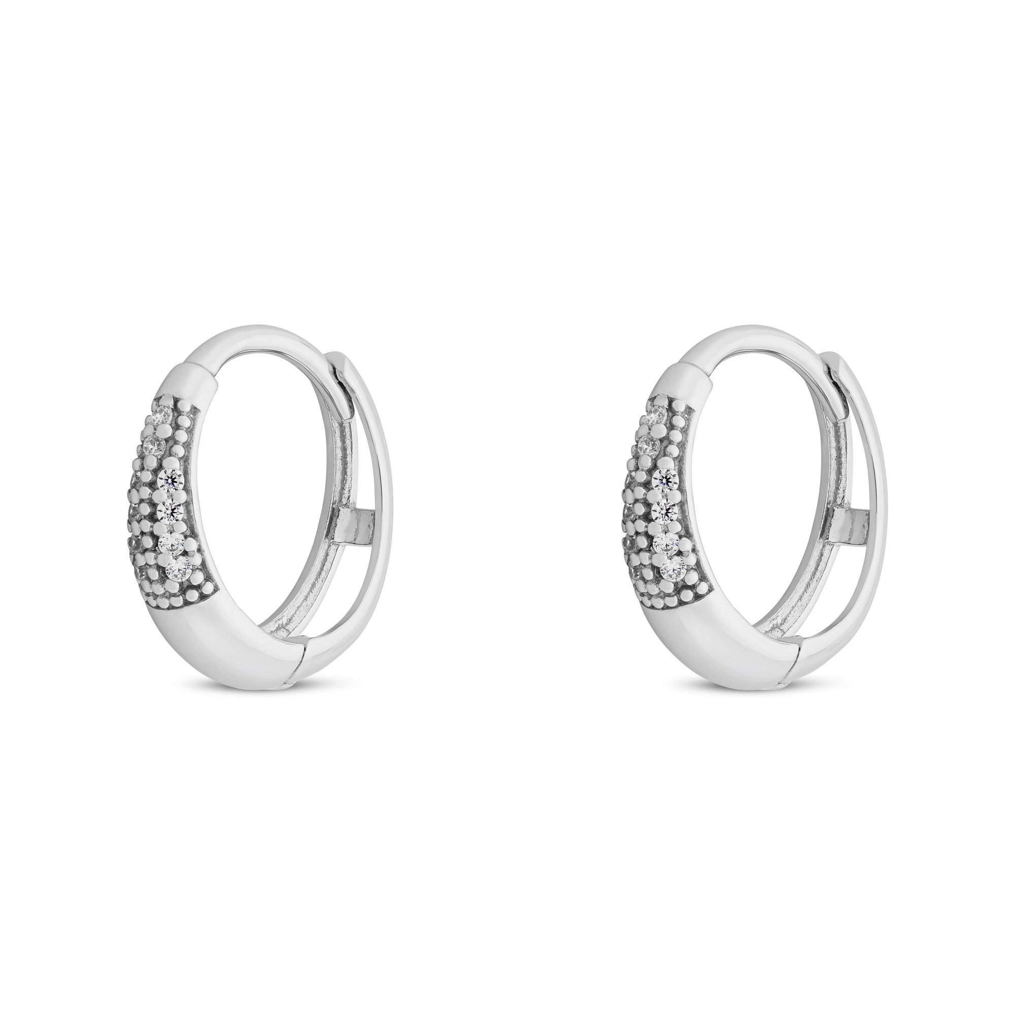 Questi orecchini a cerchio firmati L'Atelier Gold 18 Karat by Manor sono artisticamente incastonati con zirconi e realizzati in oro bianco 18 carati. Grazie al design iconico, i gioielli di tendenza sono orecchini femminili dal carattere forte e personale.