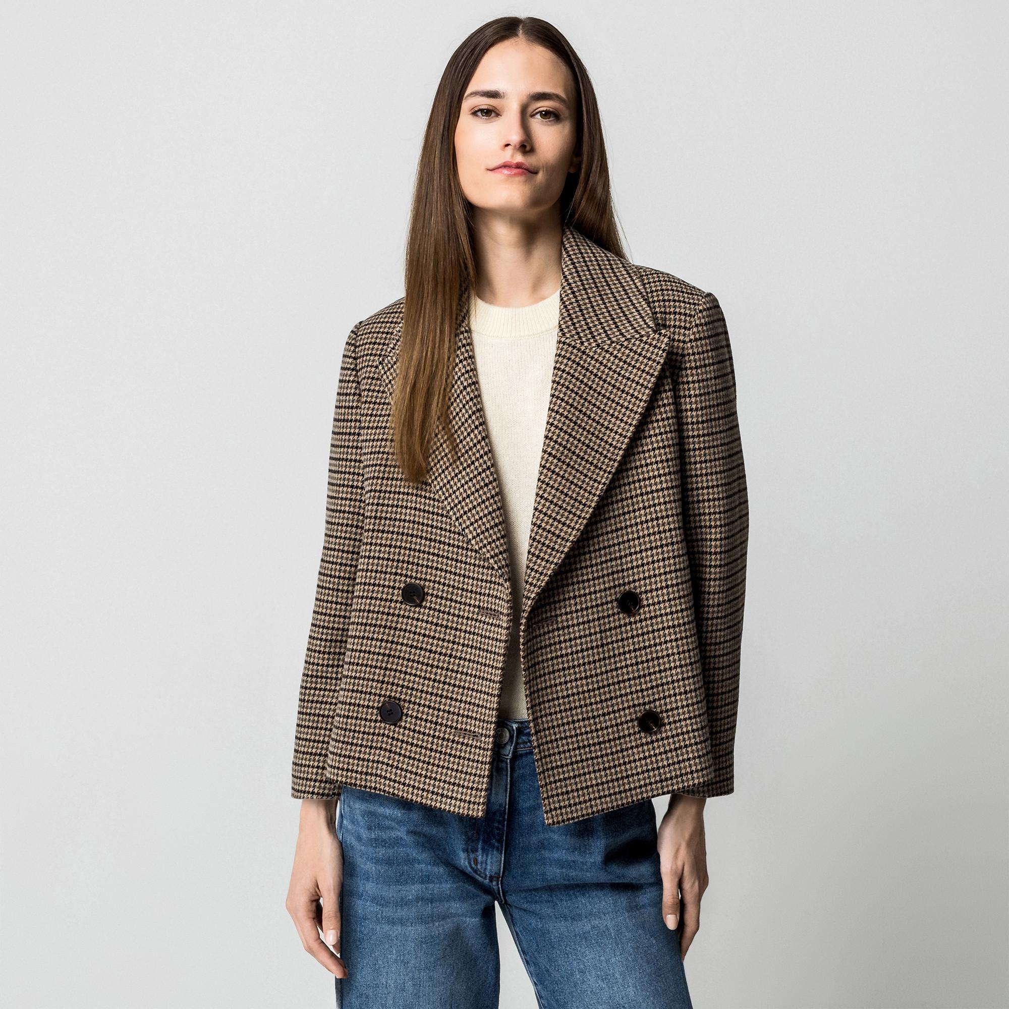 Questa giacca con taglio squadrato e motivo pied-de-poule è un capo di transizione elegante che si abbina a (quasi) tutto. È doppiopetto, con un ampio risvolto ascendente e foderata. È realizzata in un morbido misto lana.
