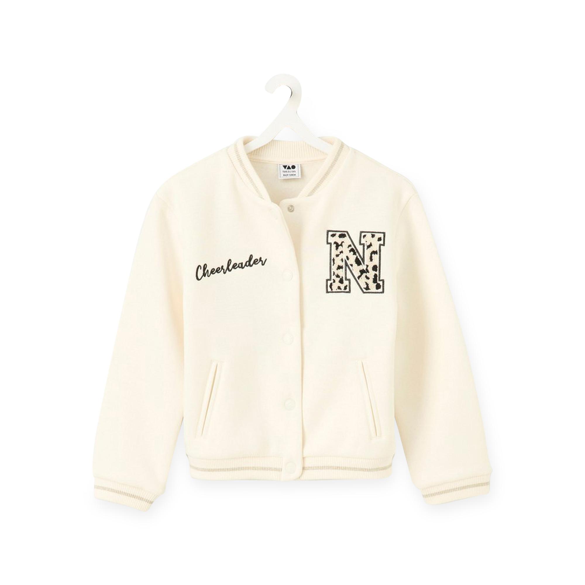 Questa giacca da ragazza color ecrù combina un look da cheerleader di tendenza con una vestibilità estremamente confortevole. Con ricamo leopardato "N", scritta "Cheerleader" e pratica chiusura con automatici, è ideale per giornate rilassanti o piccole avventure all'aperto.
