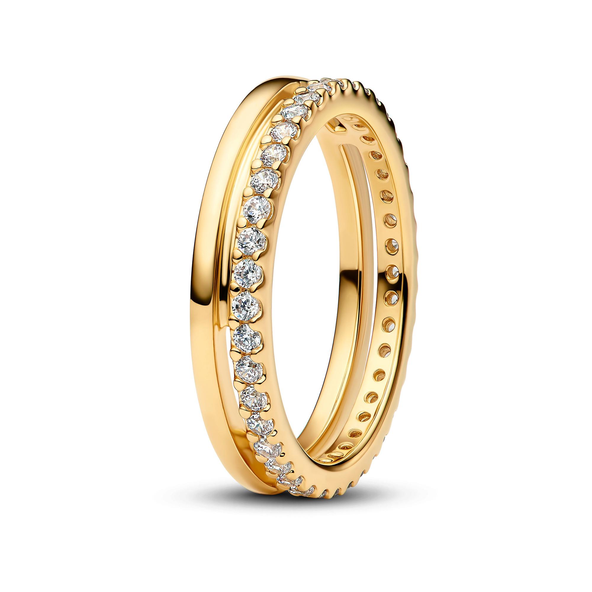 Scegli l'elegante versatilità con l'anello a doppia fascia. Una doppia fascia placcata in oro composta da un nastro lucido parallelo a un secondo nastro