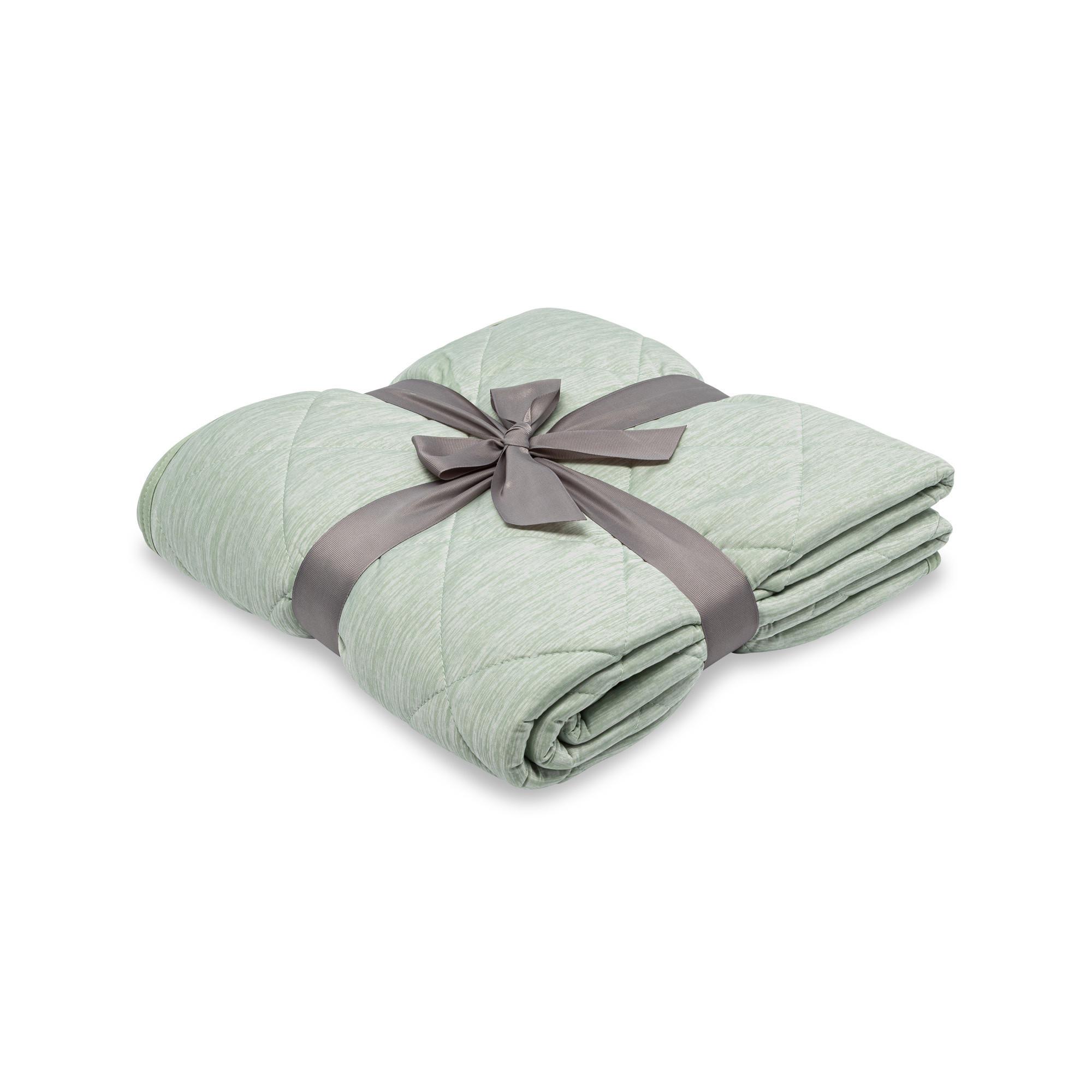 Questa trapunta è un copriletto versatile che ha proprietà autorefrigeranti. È screziata sul davanti e ha un retro in cotone in tinta unita. La struttura del tessuto è fresca sulla pelle, il calore corporeo viene dissipato rapidamente e la gestione dell'umidità è eccellente.