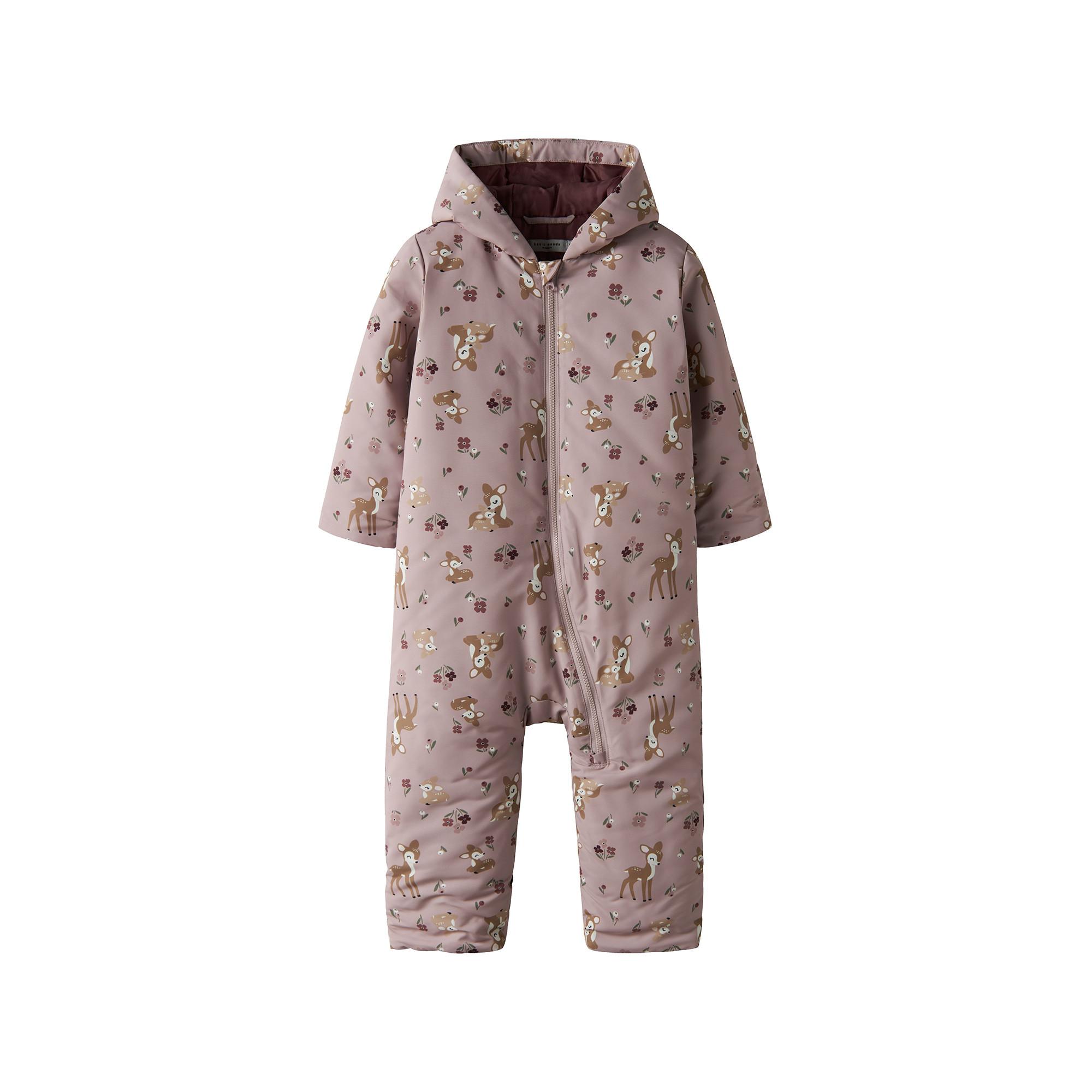 La tuta da neve firmata Name It convince con una lavorazione sostenibile in poliestere riciclato, un'imbottitura calda e una fodera morbida. Il cappuccio applicato e la cerniera integrale garantiscono comfort e protezione. Il design è completato dalla stampa integrale, che dona alla tuta un look moderno.