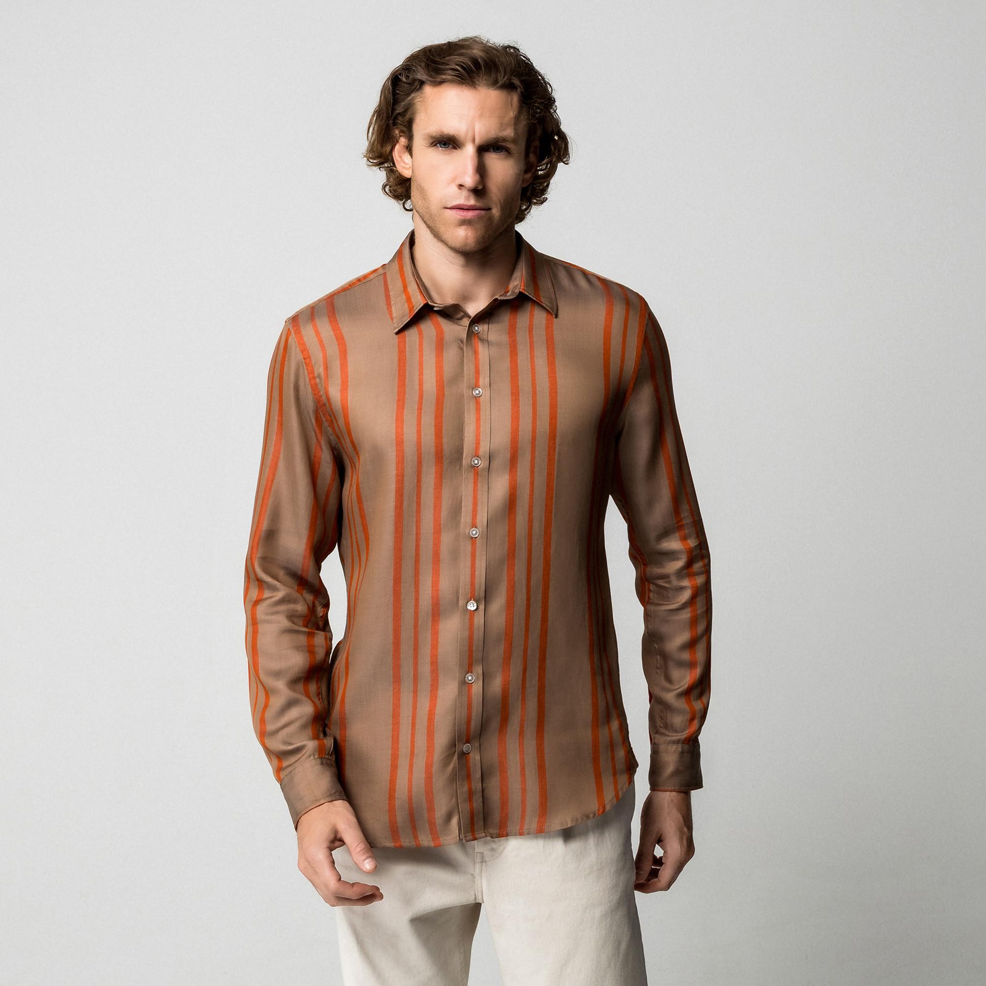 Questa camicia per il tempo libero è realizzata in morbido lyocell fluente. Dotata di colletto all'italiana, orlo arrotondato e design a righe accattivante, questa camicia da uomo può essere indossata con outfit casual da ufficio o con un look casual raffinato.