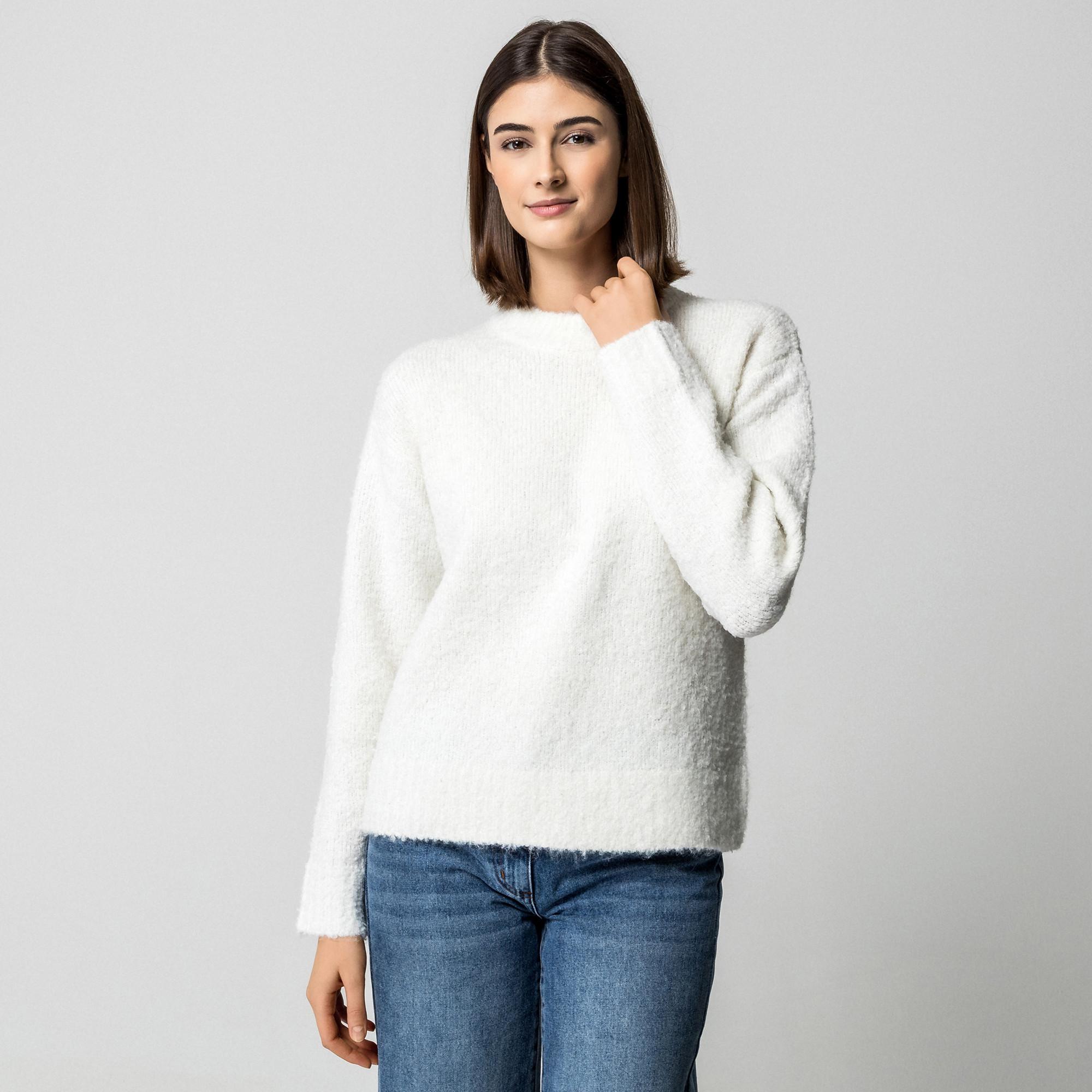 Questo pullover lavorato a maglia, realizzato in una morbida miscela di filati con lana, è un capo versatile per stili casual di tendenza dal design naturale. Presenta un comodo taglio regolare, un ampio scollo rotondo e maniche lunghe.