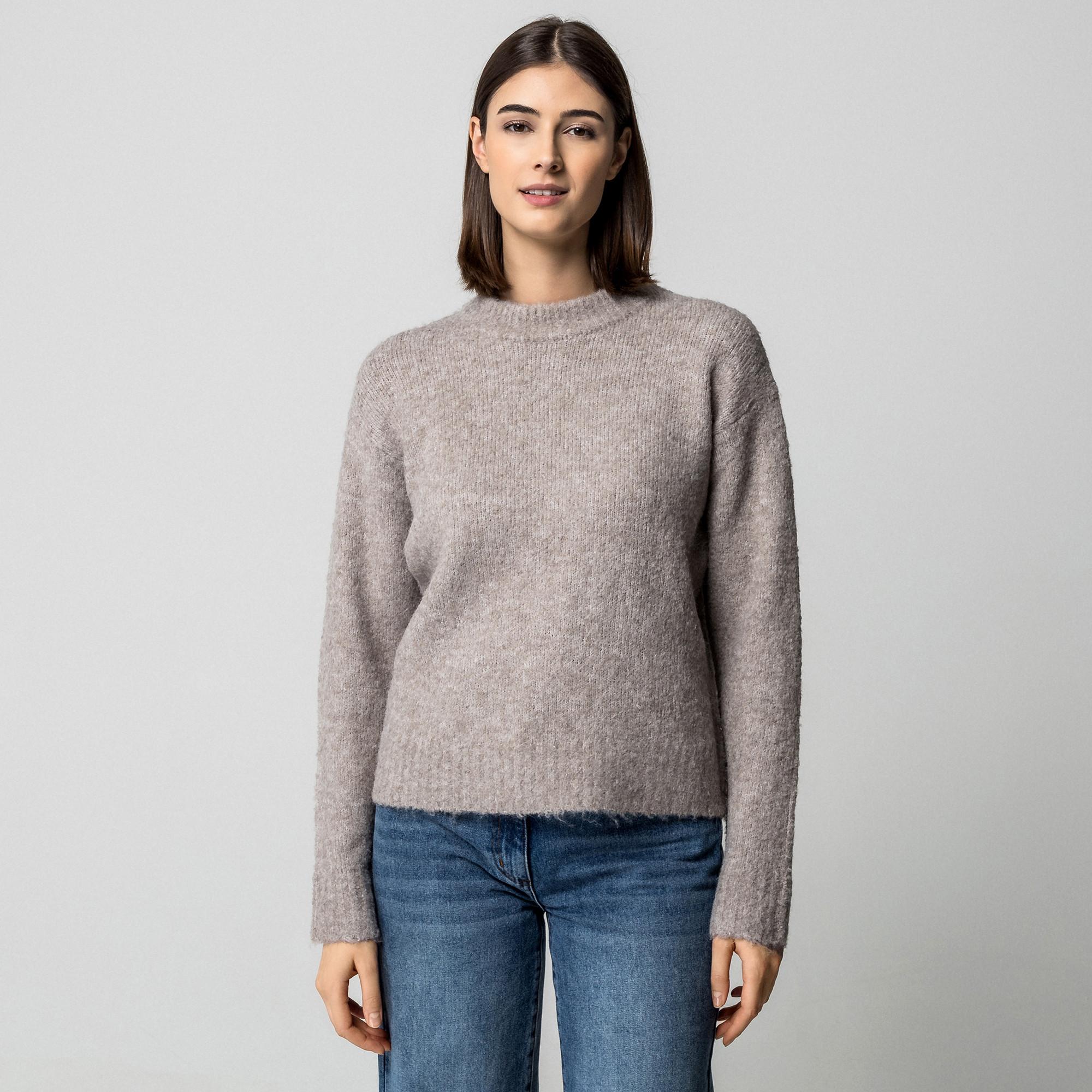Questo pullover lavorato a maglia, realizzato in una morbida miscela di filati con lana, è un capo versatile per stili casual di tendenza dal design naturale. Presenta un comodo taglio regolare, un ampio scollo rotondo e maniche lunghe.