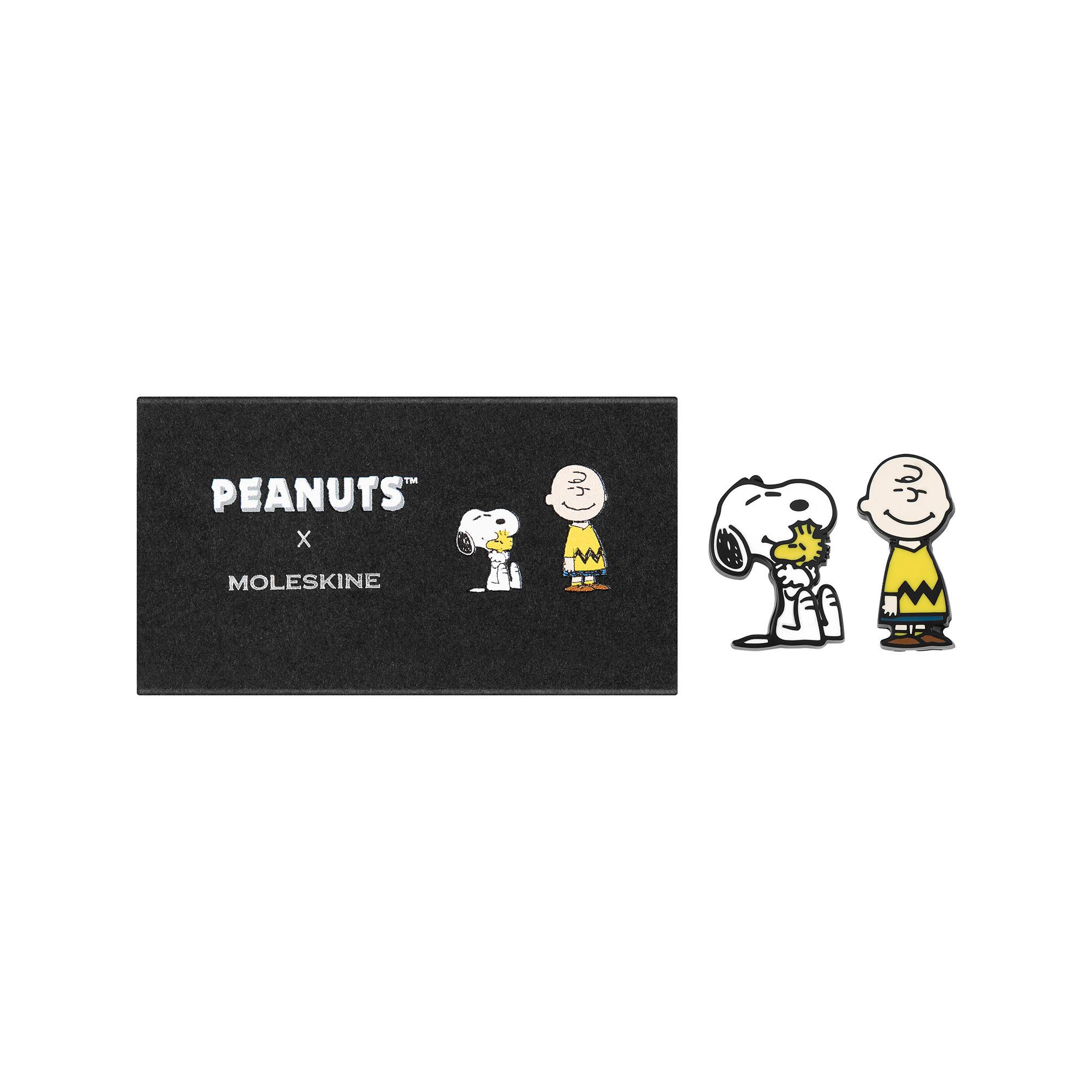 Scoprite il set di due spille Peanuts di Moleskine con Snoopy, Woodstock e Charlie Brown. Queste spille aggiungono un tocco personale al vostro taccuino e sono un ottimo modo per personalizzare la chiusura elastica o creare un regalo personale speciale.
