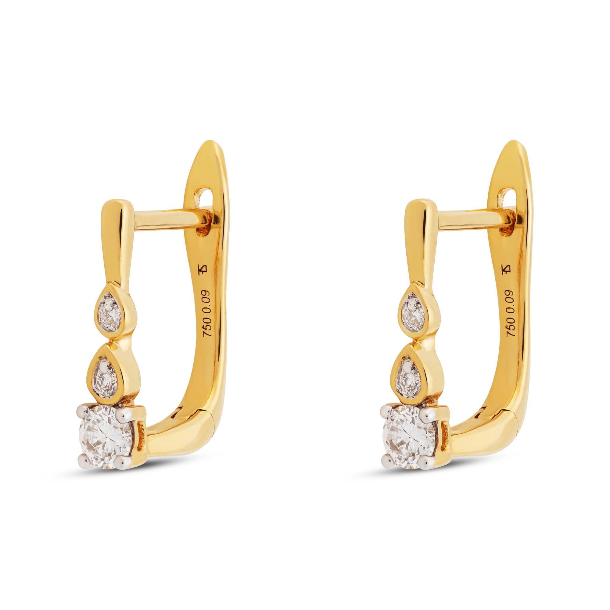 Questi orecchini di Sergio Ferris in oro giallo a 18 carati hanno un design allungato e sono incastonati con diamanti dal taglio brillante. I gioielli hanno un aspetto nostalgico e fragile. Si chiudono con la classica chiusura a ferretto.
