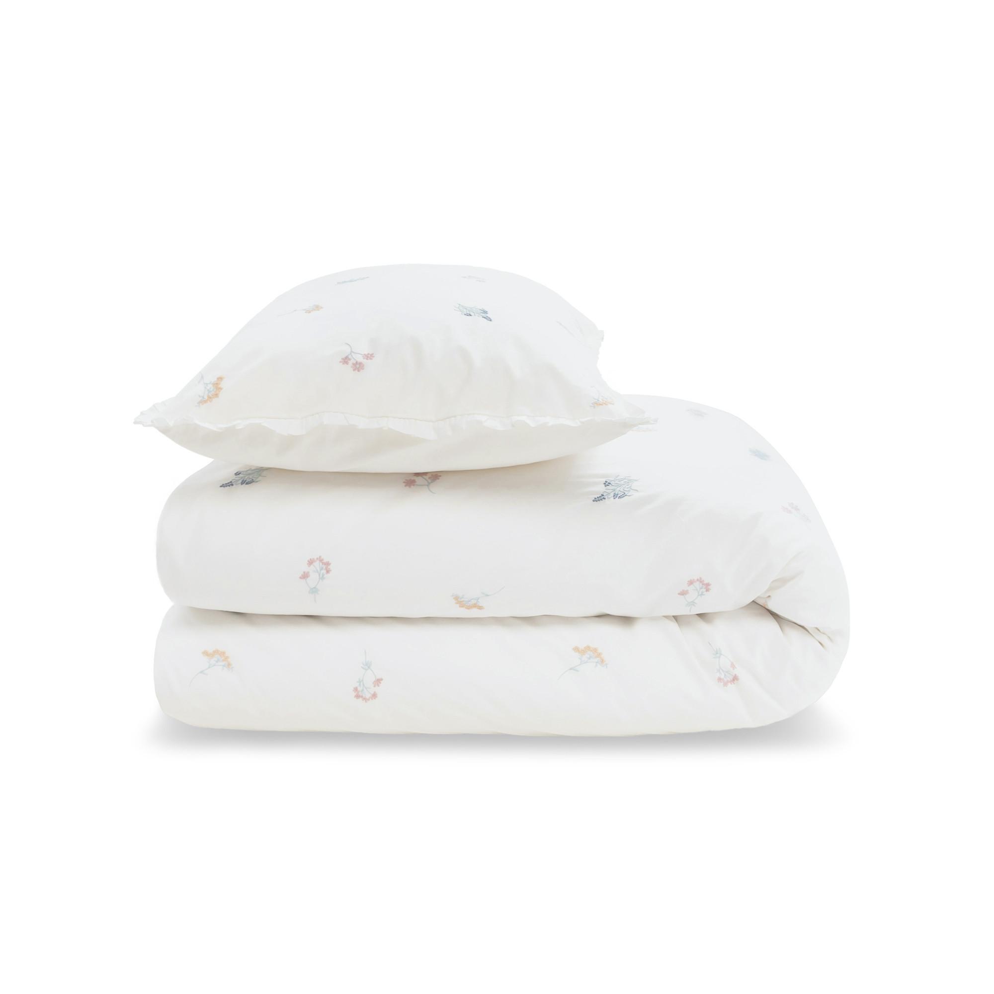 Questo copripiumino con ricami floreali nostalgici invita a sognare e aggiunge un tocco di eleganza a qualsiasi camera da letto. Il rivestimento è realizzato in puro cotone e ha una cerniera sul fondo.