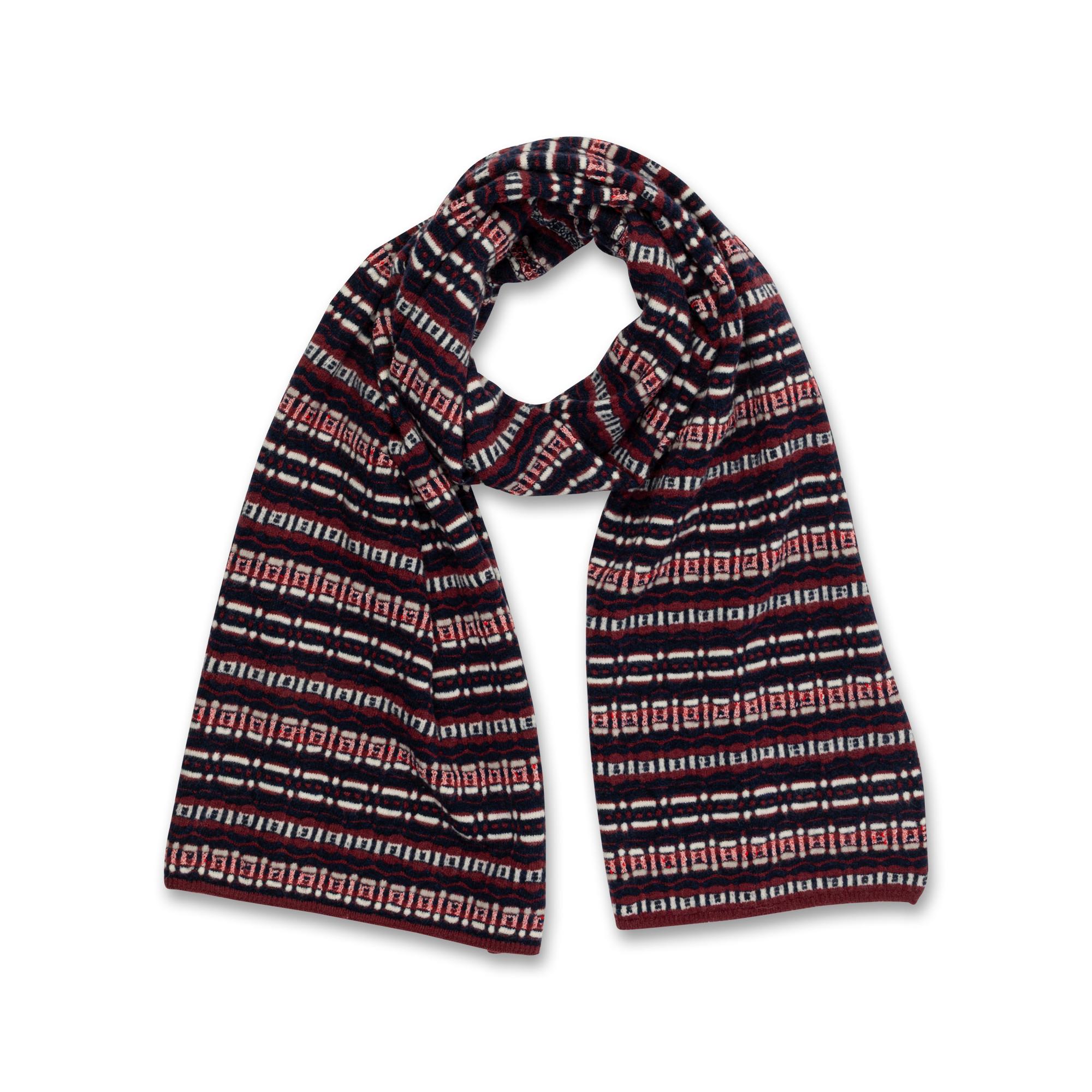Questa sciarpa lavorata a maglia con motivo grafico e polsini a coste è un accessorio rinfrescante nelle giornate fredde, che completa perfettamente l'abbigliamento casual rilassato.