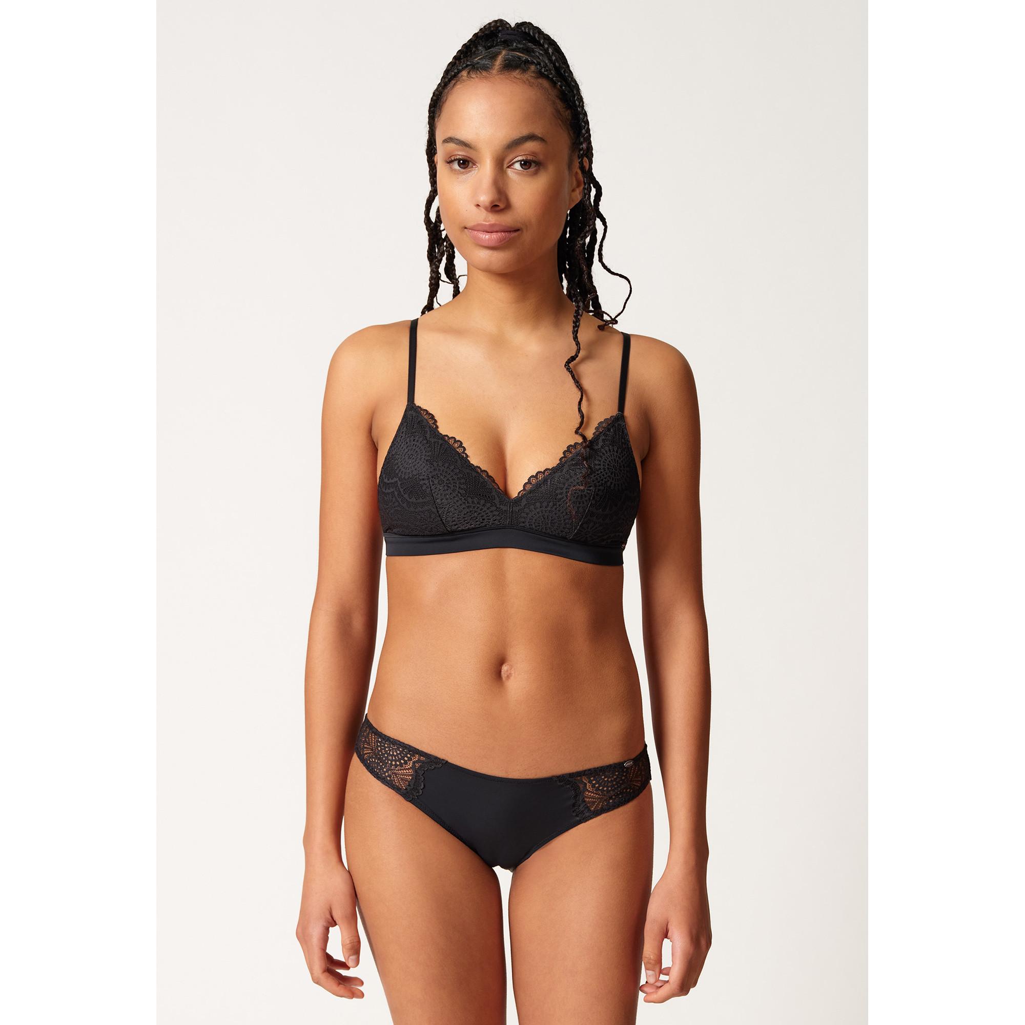Questo reggiseno morbido della serie Micrornaments è dotato di imbottiture estraibili per un comfort ottimale. Il décolleté a V e i dettagli in pizzo trasparente lo rendono una scelta elegante per l'uso quotidiano.