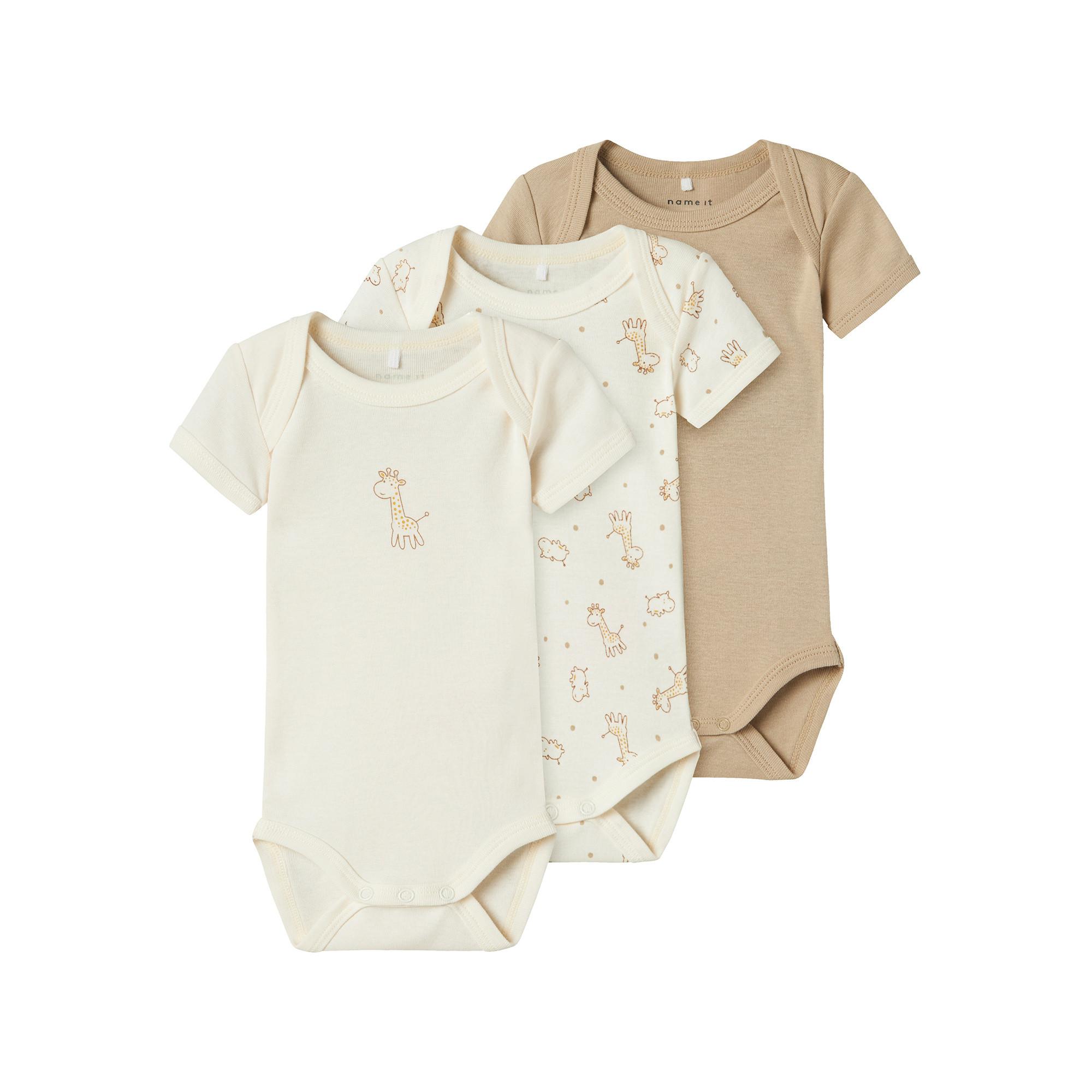 Pratici, comodi e ideali per tutti i giorni: questi body a maniche corte in confezione da 3 firmati Name It sono realizzati in morbido jersey a coste, che colpisce per la sua elasticità e il design classico. Lo scollo all'americana e la chiusura con automatici sul cavallo li rendono facili da indossare e da togliere: perfetti per i bambini in ogni situazione quotidiana.