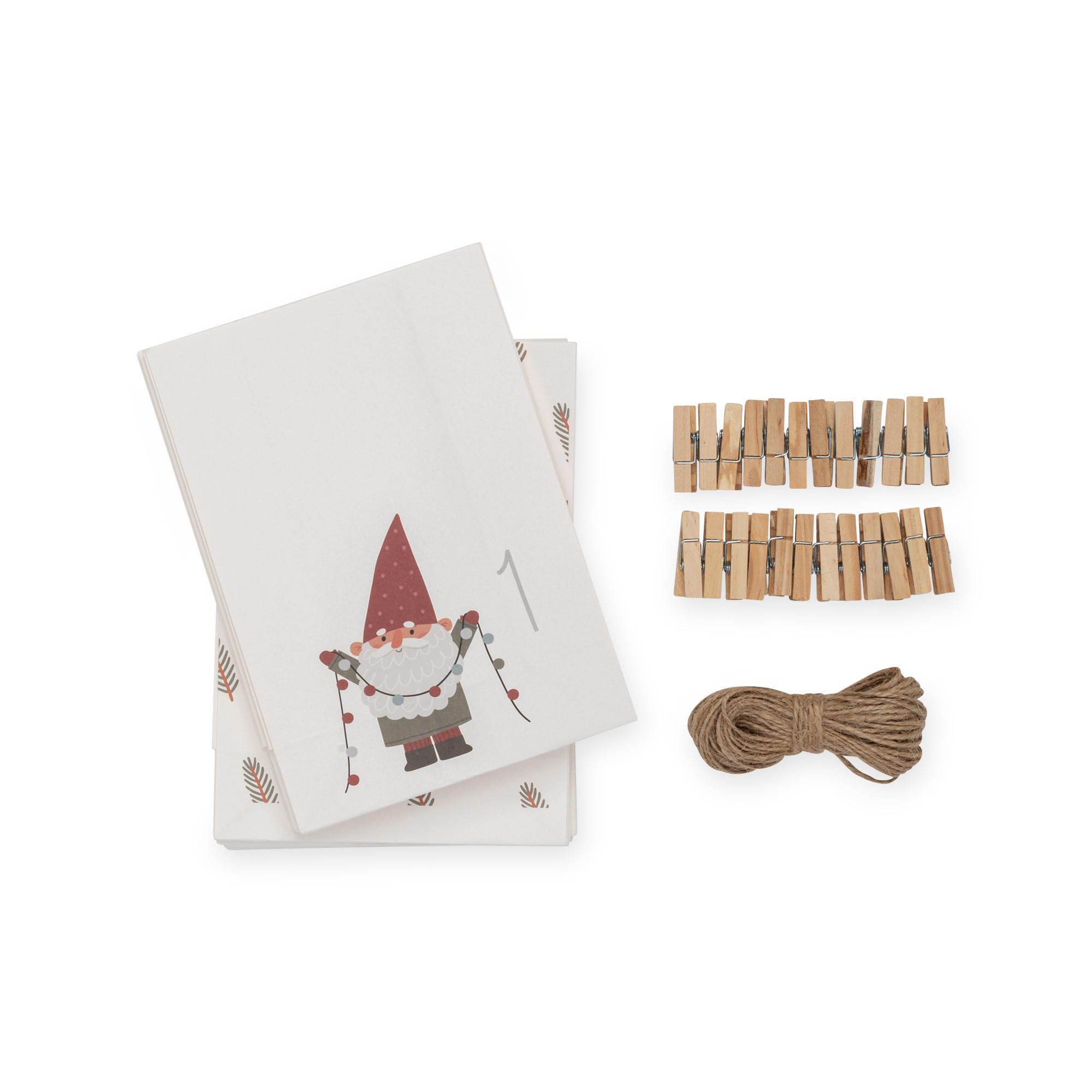 Questo set di calendari dell'Avvento da riempire firmato Manor contiene sacchetti di carta dal design amorevole, graffette e la corda abbinata per attaccare le sorprese dell'Avvento: buon Natale!