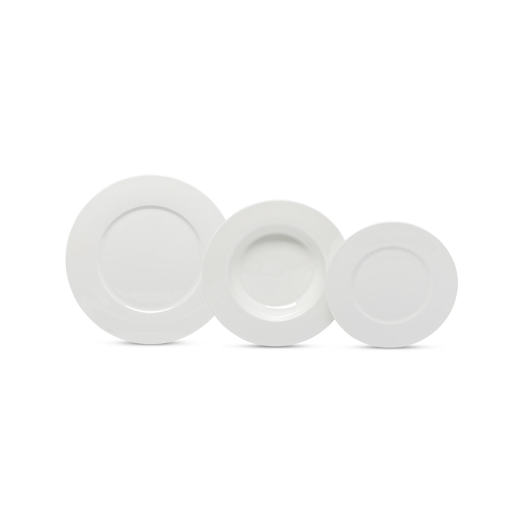 Questo servizio da tavola firmato Manor è realizzato in Fine Bone China, la raffinata porcellana nota per la particolare leggerezza, l'elevata trasparenza e una struttura molto fine, quasi traslucida. Il design purista sottolinea l'esclusività delle stoviglie con sobrietà ed eleganza. 4 piatti piani/28 cm 4 piatti da dessert/21 cm 4 piatti fondi/24 cm
