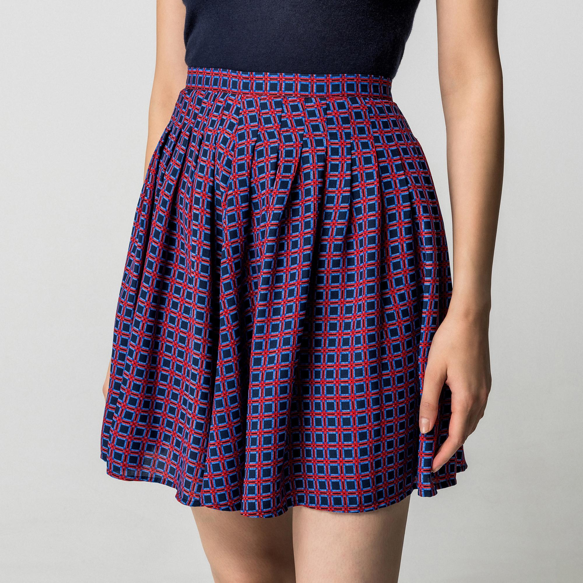 Questa gonna corta con stampa retrò e pieghe morbide si rivela un capo versatile e affidabile per tutti i giorni con una silhouette elegante e un atteggiamento chic francese di tendenza. La gonna è dotata di una cerniera nascosta sul lato.