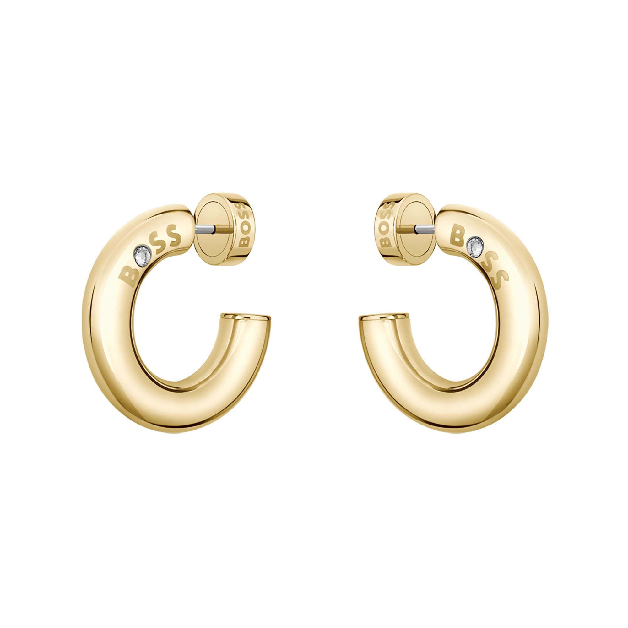 Gli orecchini firmati Boss sono realizzati in acciaio inossidabile di alta qualità e decorati con un cristallo sul logo. Questi eleganti accessori uniscono stile e raffinatezza e sono perfetti per il look moderno.