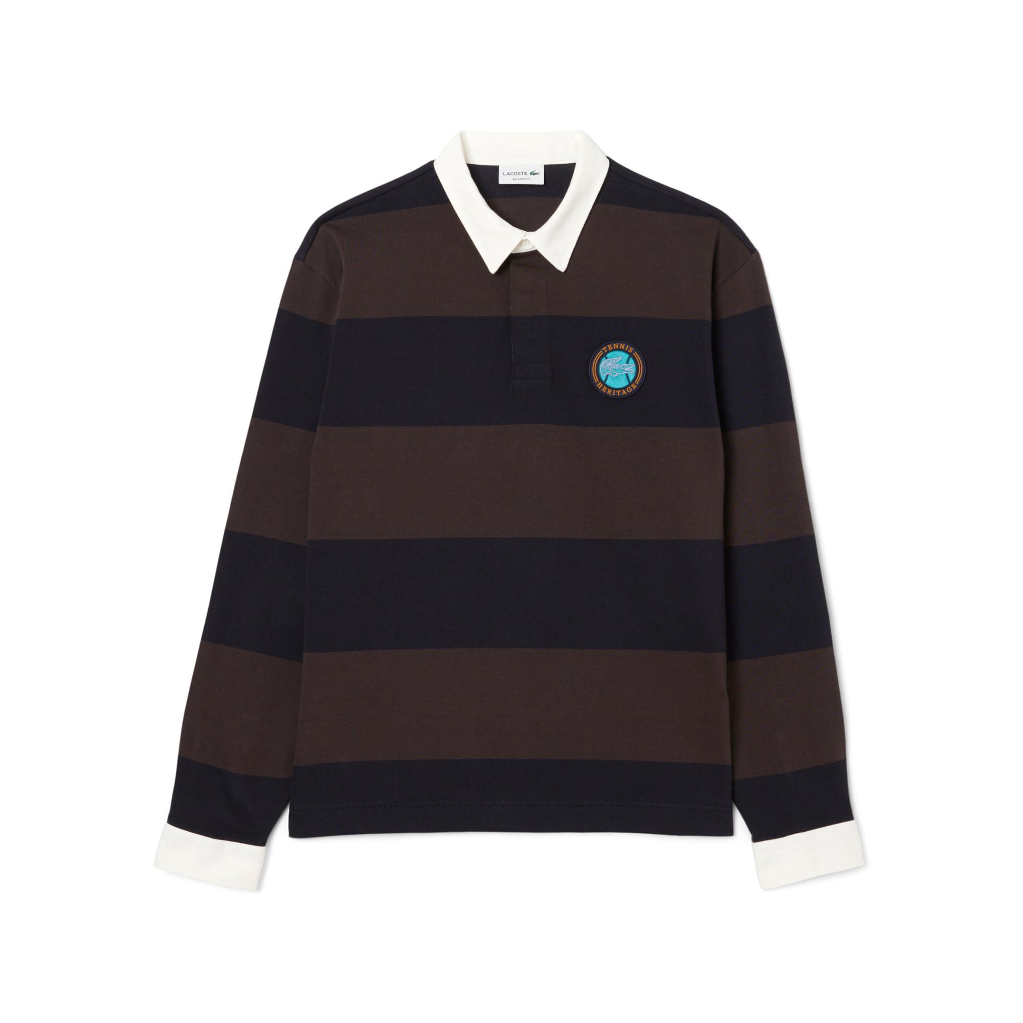 Una nuova interpretazione elegante di uno stile iconico di Lacoste, inventori della polo nel 1933. Questo modello ispirato al rugby è realizzato in jersey pesante, con righe larghe e un marchio Tennis Heritage ricamato. Sottili dettagli a contrasto creano una sensazione chic e rilassata.