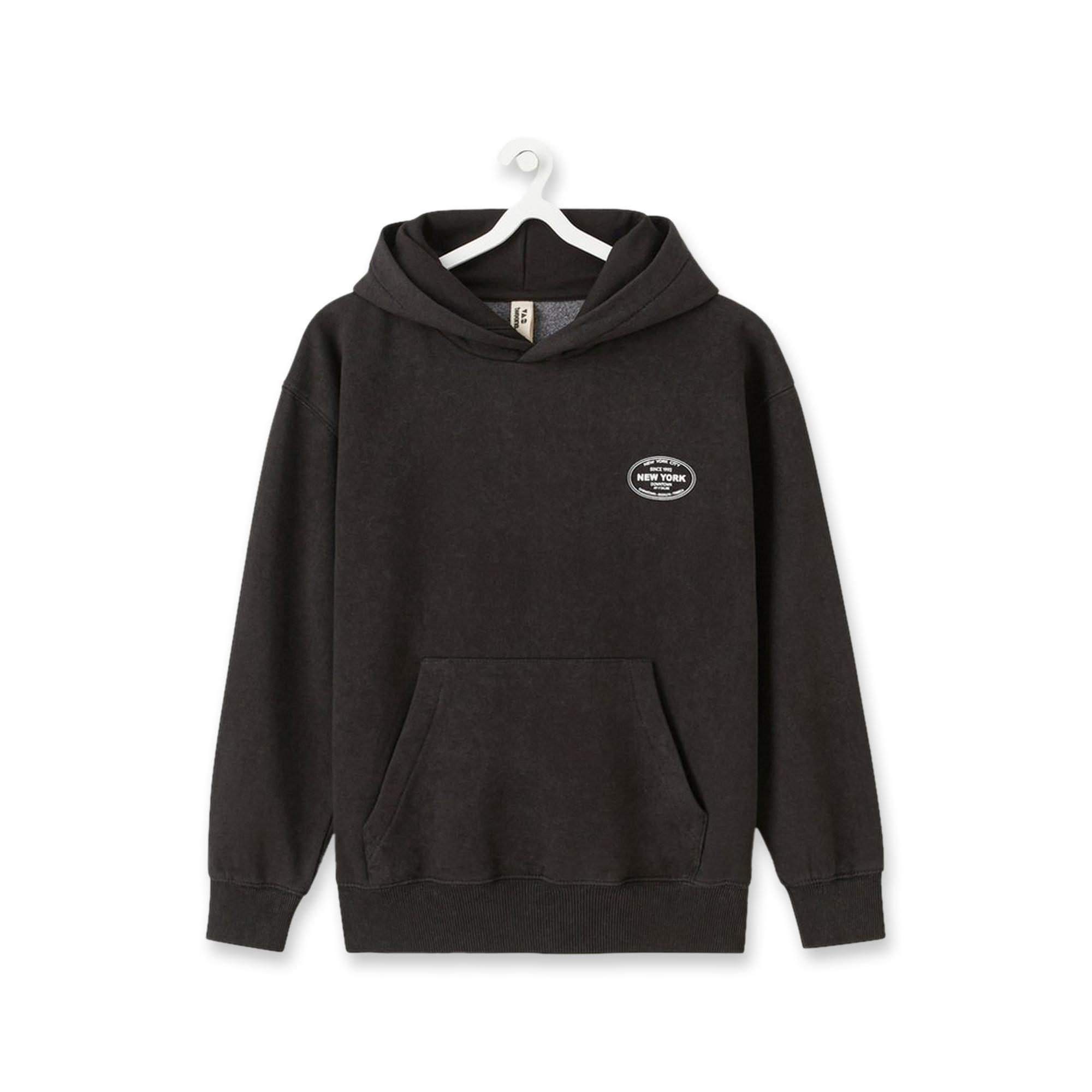 Questa felpa nera da ragazzo dona un look casual da streetwear e colpisce per la stampa di New York City sulla schiena. La qualità morbida e calda, il cappuccio e la tasca a marsupio offrono comfort e dettagli pratici. Stampa New York City morbida e calda per le giornate fredde Cappuccio e tasca a marsupio per comfort e funzionalità