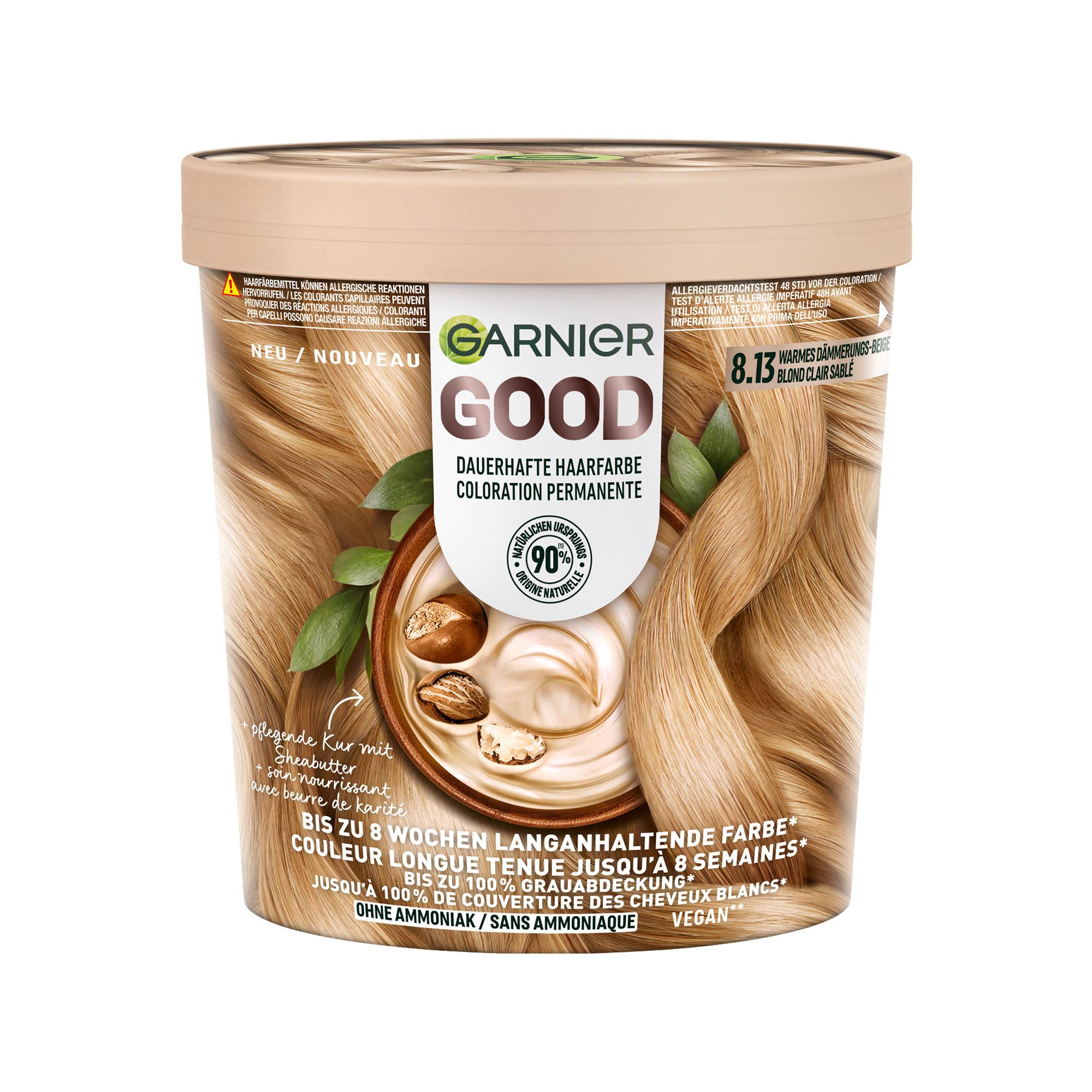 Garnier GOOD Tinta Permanente offre fino a 8 settimane di colore brillante e copre fino al 100% dei capelli bianchi. Il colore è estremamente facile da applicare con le mani e ha un piacevole profumo di bacche di goji, orchidea e sandalo. La formula vegana, composta al 90% da ingredienti di origine naturale, crea splendidi riflessi e sfumature di colore. I pigmenti di colore penetrano in profondità nella fibra capillare per un risultato cromatico dall'aspetto naturale.