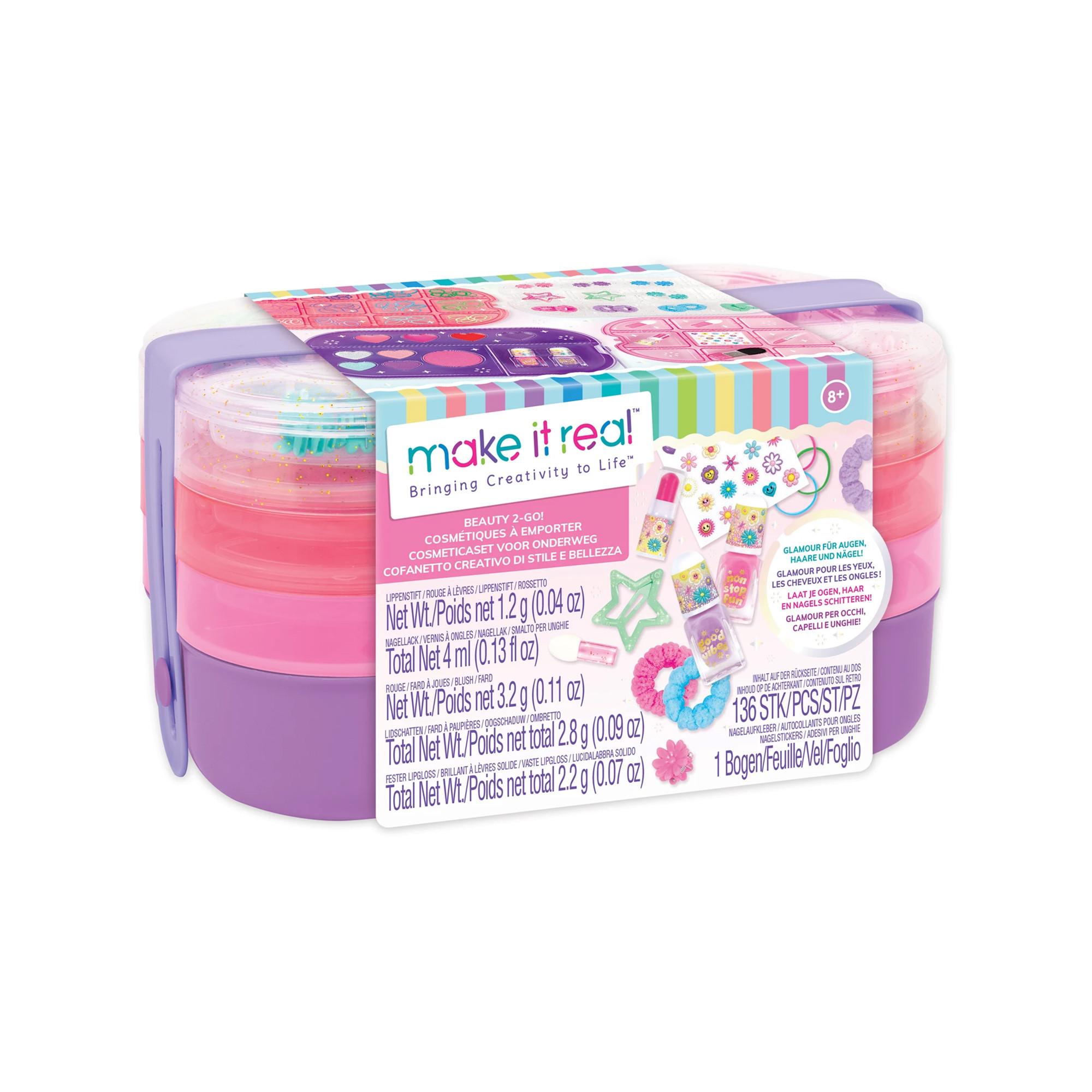 Contenuto: 4 scomparti, 10 fermagli per capelli, 8 elastici per capelli, 96 elastici in gomma per capelli, 4 colori solidi di lucidalabbra, 4 colori di ombretto, 1 colore di fard, 2 flaconi di smalto per unghie, 1 rossetto, 1 foglio di adesivi per unghie, 1 pennello cosmetico, 1 applicatore di lucidalabbra, 2 applicatori di ombretto, 1 foglio di istruzioni