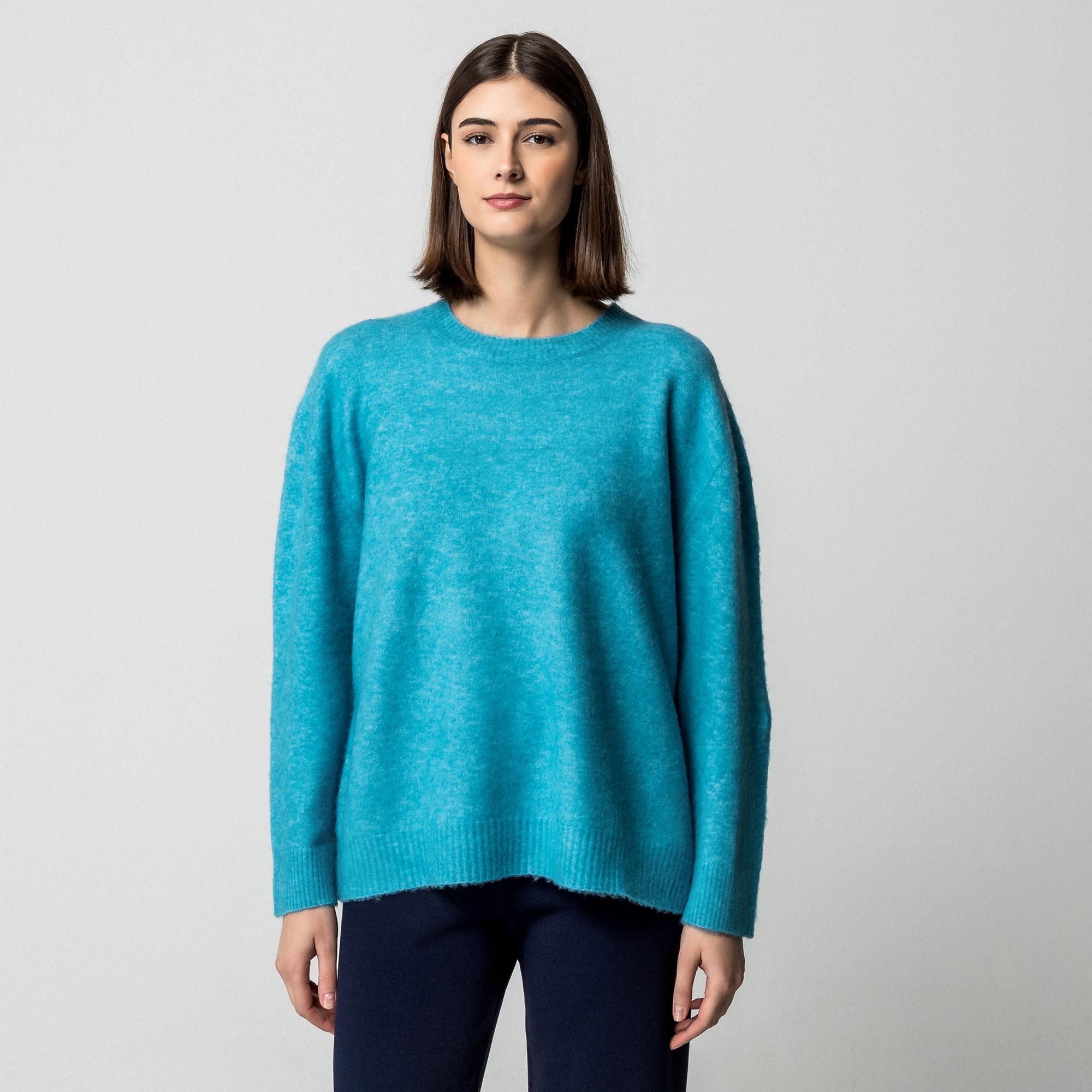 Questo pullover lavorato a maglia è realizzato con una classica vestibilità regolare in un mix di lana piacevolmente morbido. Ha un colletto alla coreana, maniche lunghe e polsini a costine.