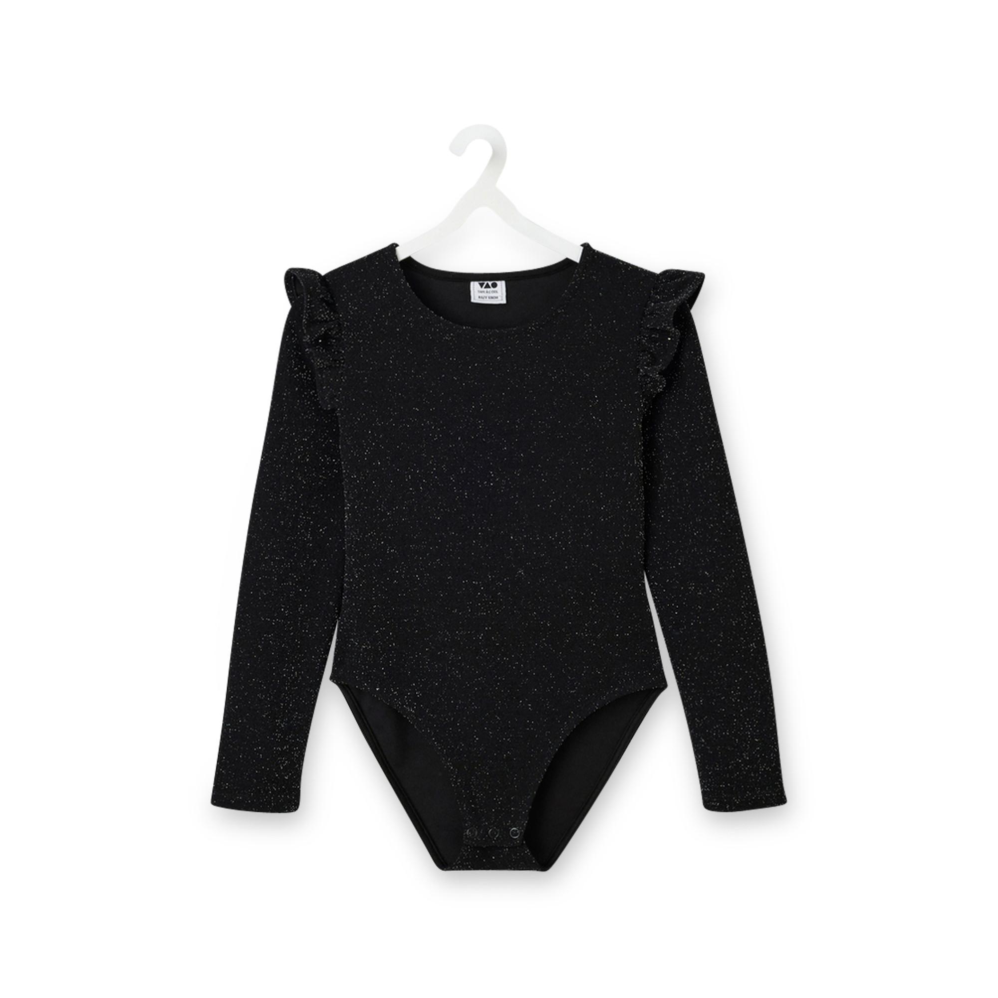 Il body di Tao Kids ha le maniche lunghe e il collo rotondo. Gli effetti glitterati gli conferiscono un look giocoso, mentre i bottoni a pressione lo rendono facile da indossare e da togliere.