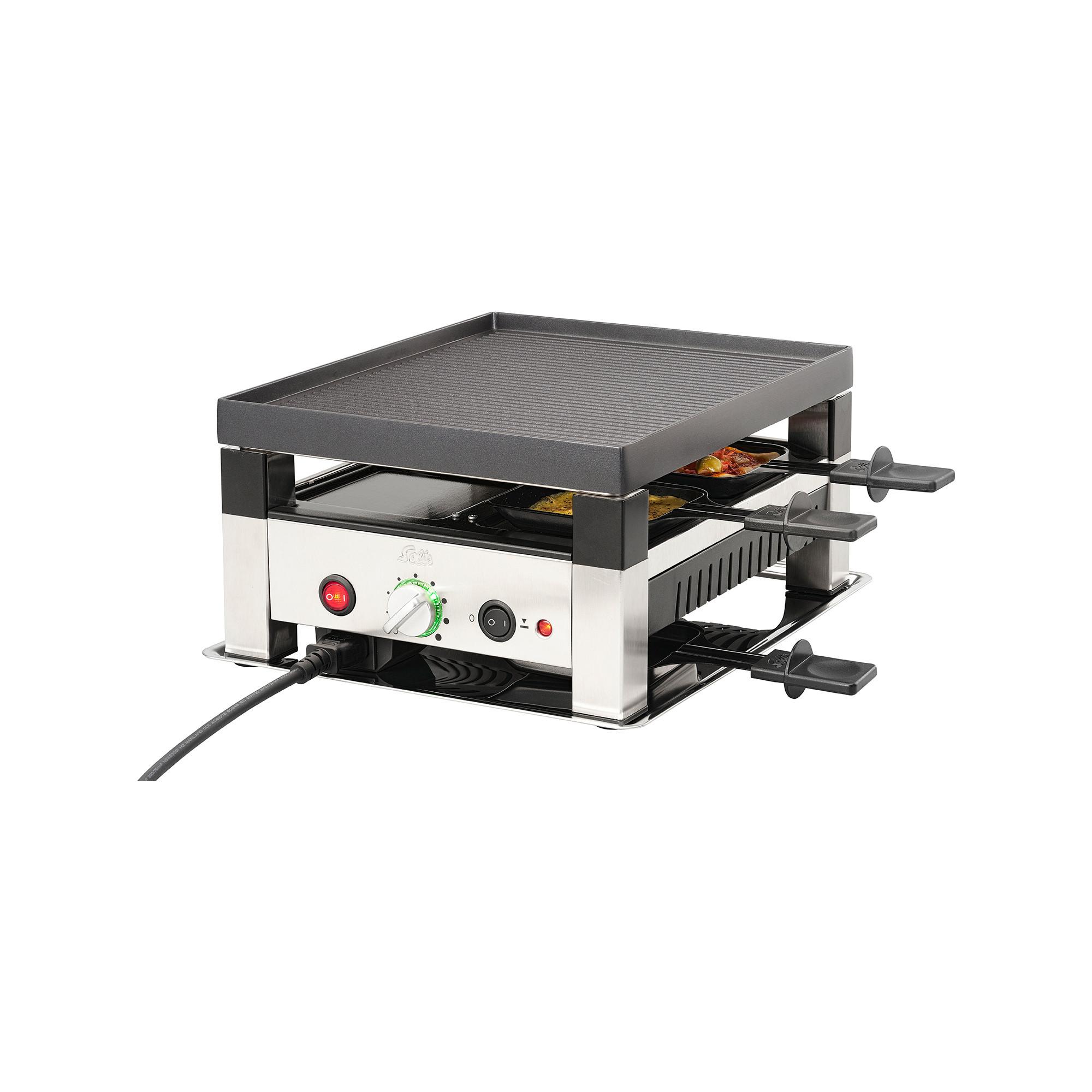 Questo innovativo grill da tavolo offre 4 diverse funzioni: Dalla raclette alla griglia, per cuocere mini pizze e mini pancake. Adatto per un massimo di 4 persone.