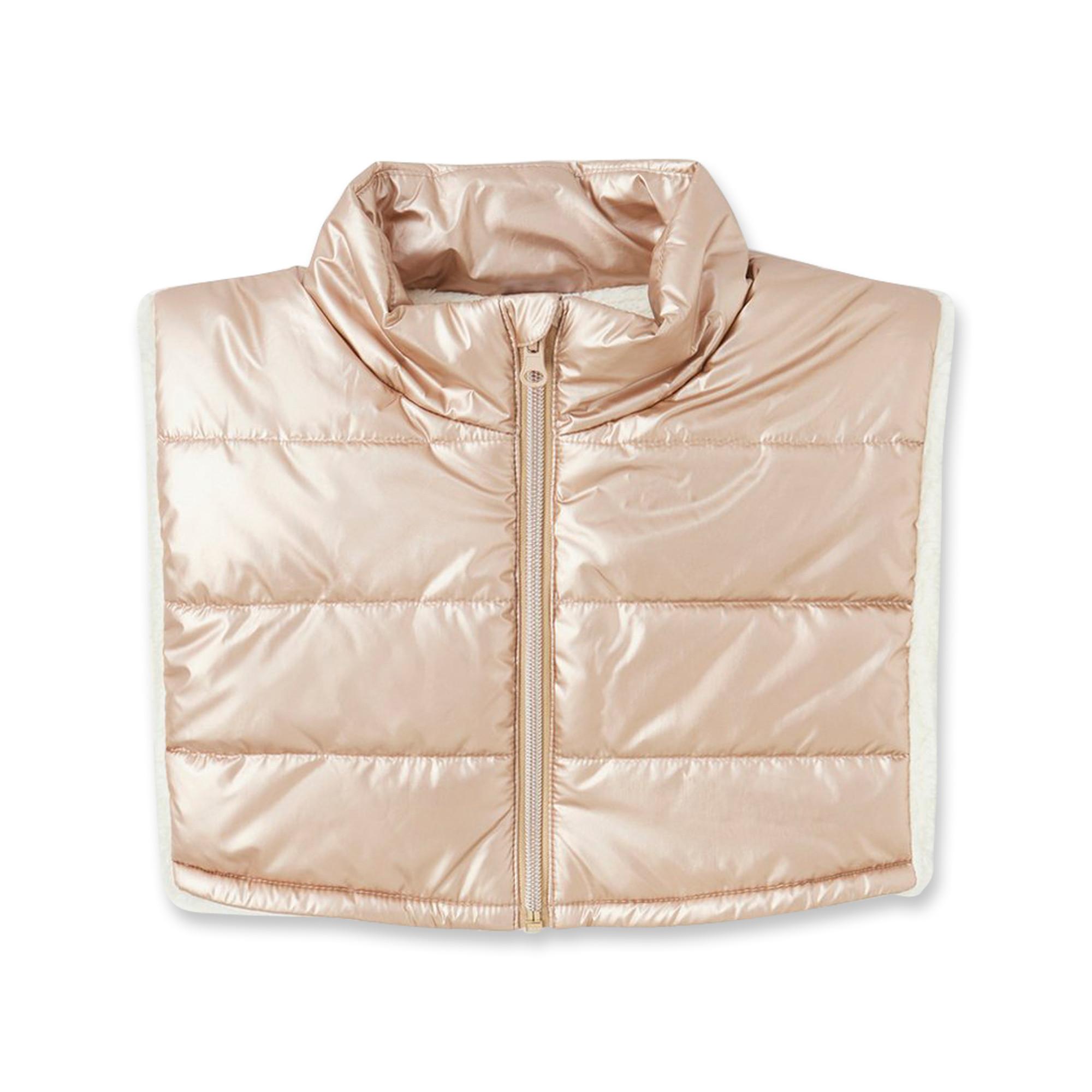 Questo scaldacollo dorato aggiunge un tocco di glamour a ogni outfit, mantenendo al tempo stesso un calore avvolgente. Con il suo design trapuntato, la fodera in sherpa morbida e la pratica zip, unisce perfettamente stile e comfort.