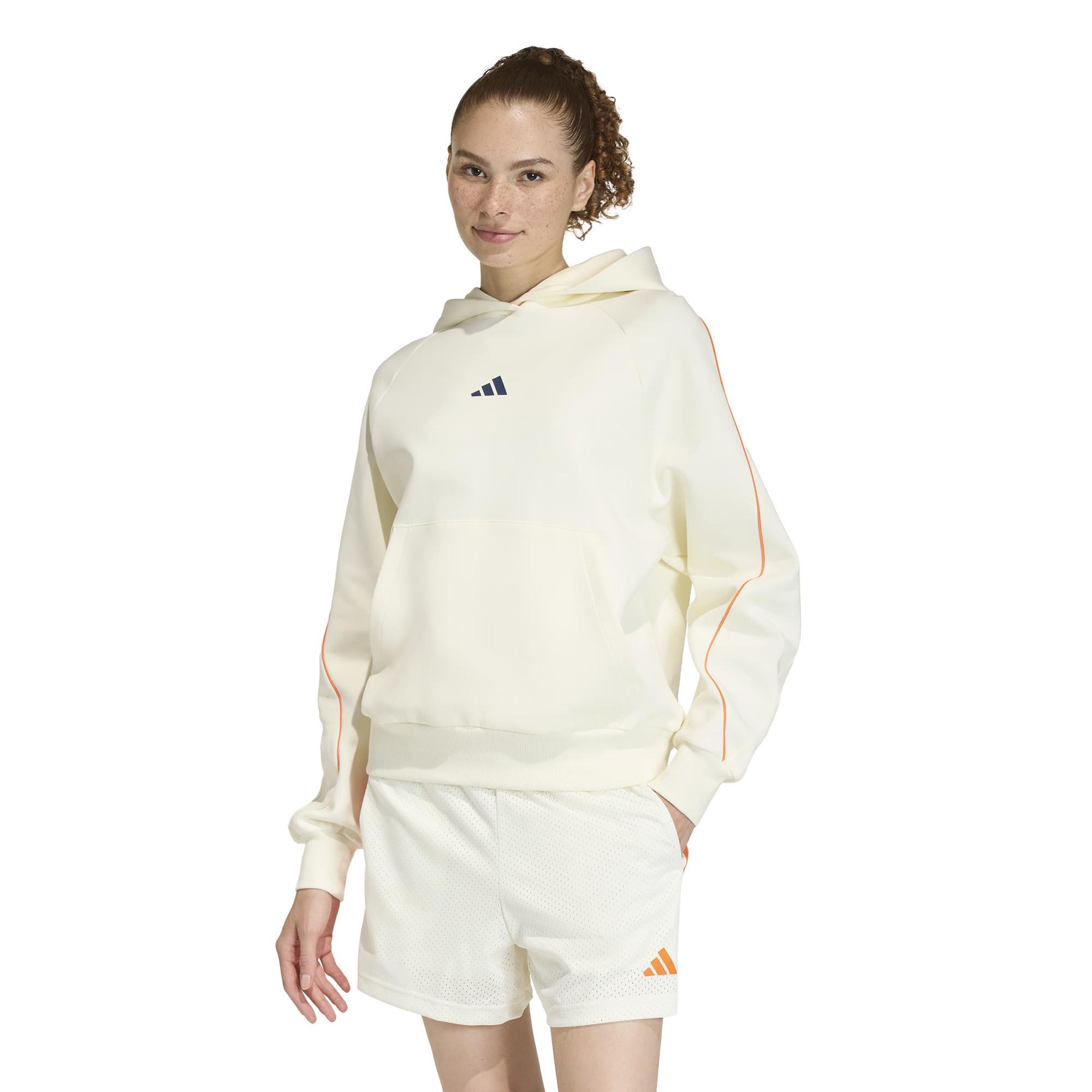 Le rifiniture in raso aggiungono un tocco di eleganza, mentre la tasca a marsupio offre un pratico spazio di stivaggio. Questa felpa con cappuccio unisce l'identità adidas allo spirito sportivo e garantisce comfort e sicurezza nella vita di tutti i giorni.