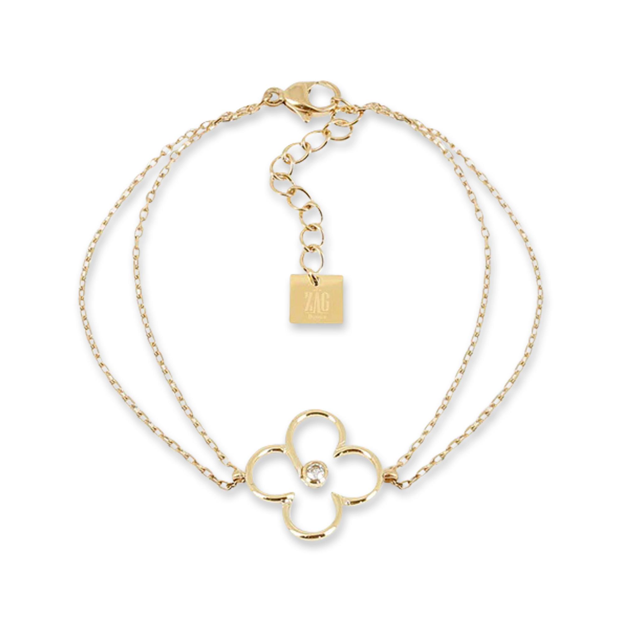 Questo bracciale firmato Zag Bijoux è un gioiello in filigrana con cuore ed eleganza femminile. La catenina a forma di fiore con pietra decorativa si chiude con un moschettone, è leggermente regolabile e ha un charm con l'etichetta sulla chiusura.