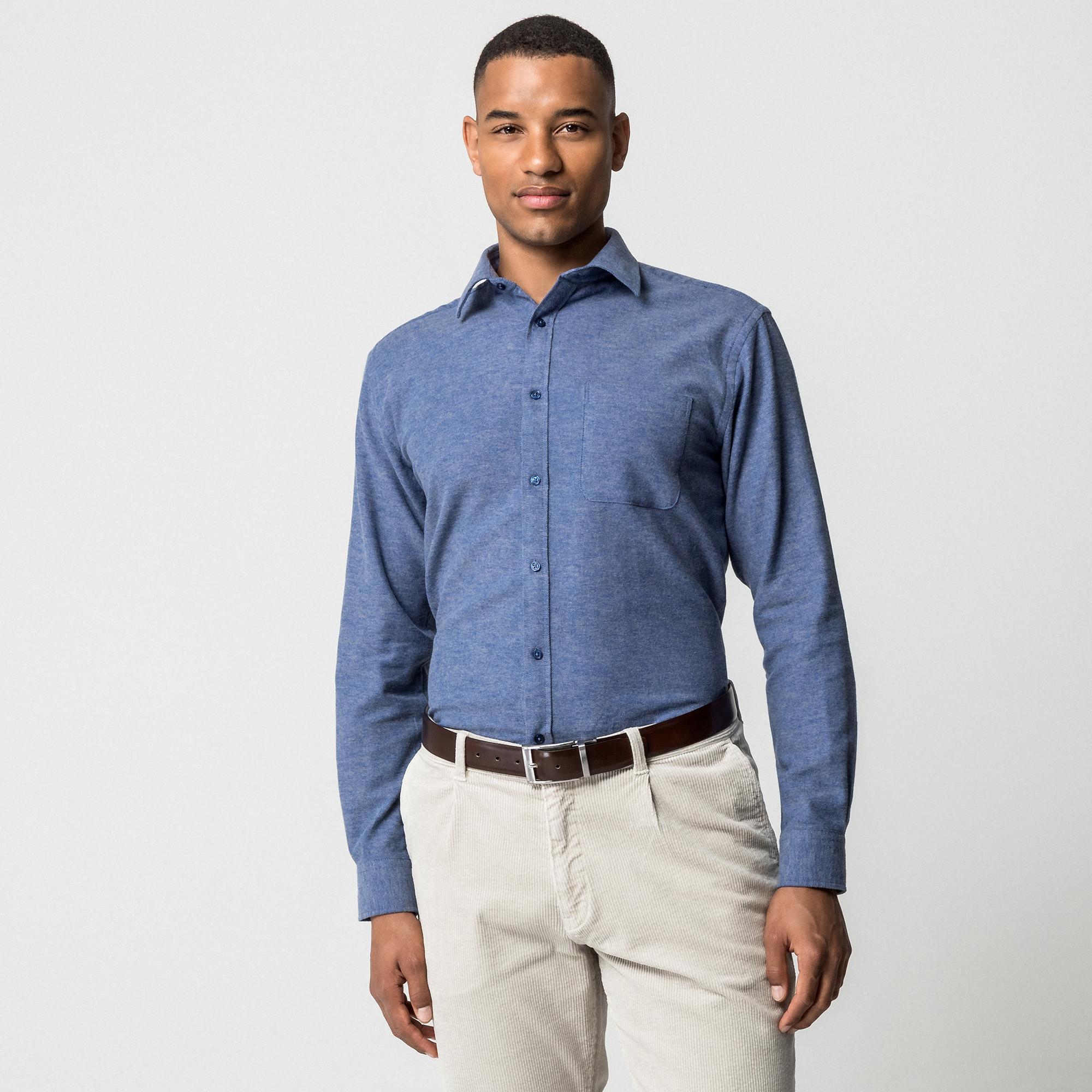 Questa camicia a maniche lunghe da uomo offre un'aggiunta classica e versatile a qualsiasi guardaroba. Il design presenta un tradizionale collo Kent e una chiusura frontale a bottoni completa, fornendo un aspetto raffinato adatto a varie occasioni. Una singola tasca sul petto aggiunge un dettaglio funzionale alla parte anteriore.