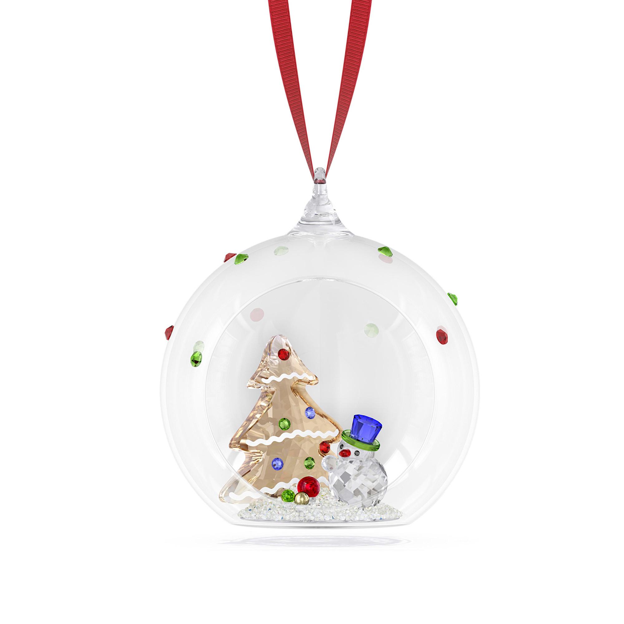 Questa decorazione natalizia scintillante vi trasporta in un paesaggio invernale magico, colorato e giocoso. La palla di vetro, appesa a un nastro rosso, presenta un albero dorato accanto a un allegro pupazzo di neve, con 763 sfaccettature realizzate con precisione e Crystal Rocks con effetto Moonlight.