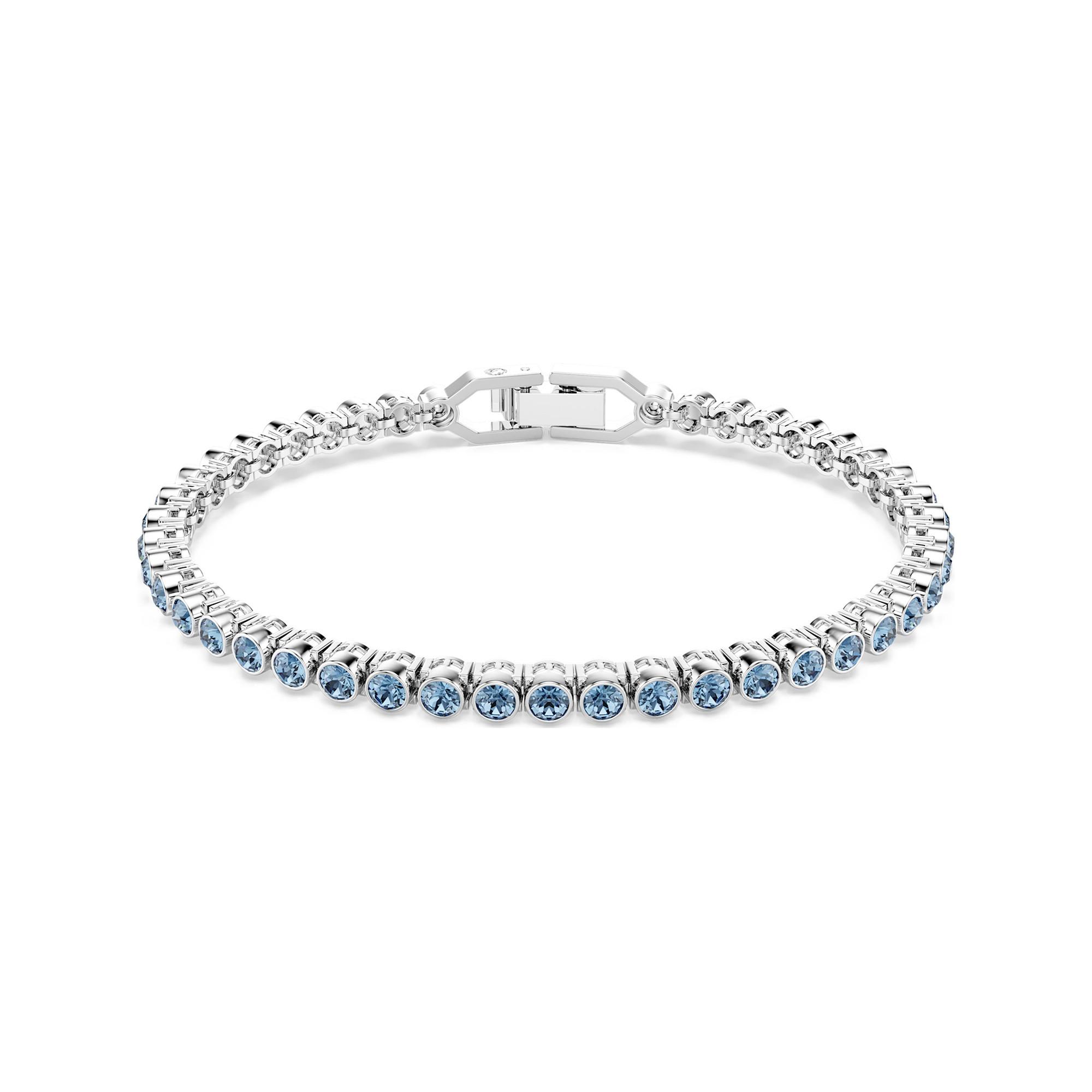 Questo elegante bracciale da tennis della collezione Imber firmata Swarovski propone una serie di scintillanti cristalli blu in una montatura a caldaia rodiata e dona a qualsiasi abbigliamento un elegante tocco di colore. Il design delicato con chiusura pieghevole sicura e prolunga è ideale per il giorno e la sera. Cristalli blu brillanti per una dichiarazione colorata e raffinata Montatura rodiata e chiusura pieghevole sicura con estensione Design sottile ed elegante (0,3 cm di larghezza), perfetto da abbinare o indossare da solo