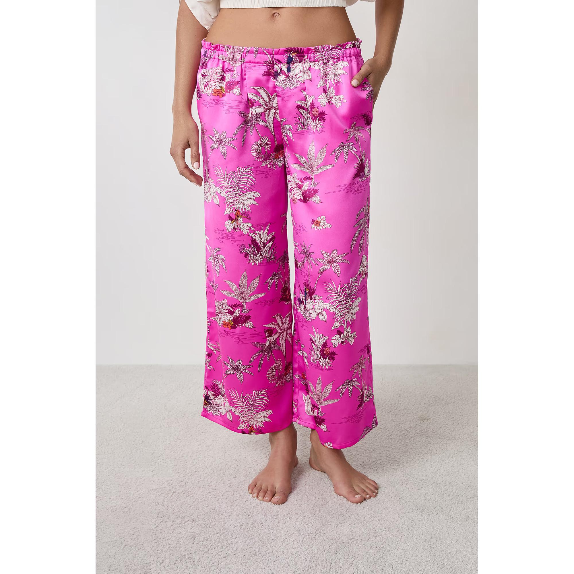 Il pantalone da pigiama satinato si distingue per il taglio fluido e la stampa raffinata. La fascia elastica garantisce una vestibilità confortevole. Un modello elegante per notti rilassanti e momenti di relax.