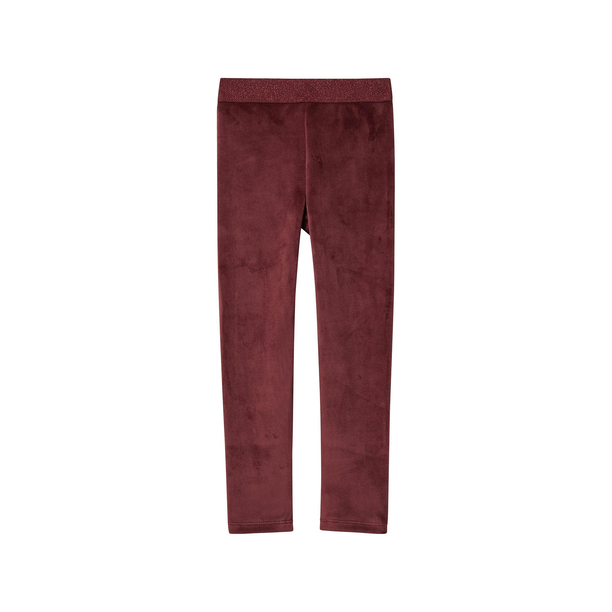 Questi leggings in morbido velluto con cintura glitterata sono perfetti per le occasioni festive. La vita media elasticizzata e la vestibilità slim garantiscono comfort e libertà di movimento. Il materiale caldo li rende ideali per le giornate più fredde.