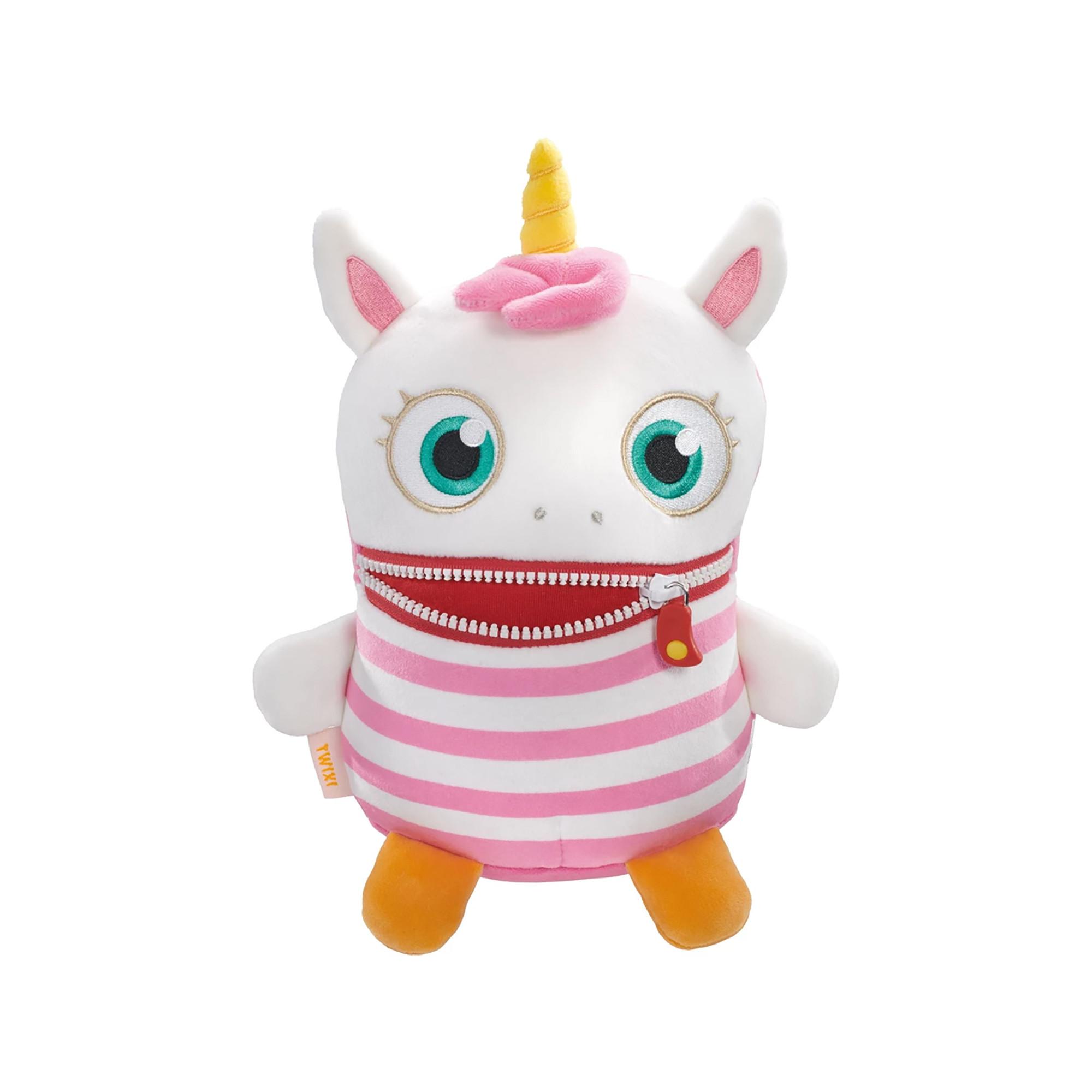 Ciao a tutti! Sono TWIXI Schnixi, il coniglietto rosa shocking che ama il boogie-woogie e il gelato soft. Ma sono anche una grande MANGIATRICE DI PREOCCUPAZIONI. Infatti, ancora più che il gelato alla fragola con granella di cioccolato, adoro mangiare le preoccupazioni, anche senza panna! I personaggi BOOGIE WOOGIES hanno un nuovo materiale di superficie più elastico. Grazie al riempimento aggiuntivo, sono particolarmente morbidi e possono stare in piedi su qualsiasi superficie.