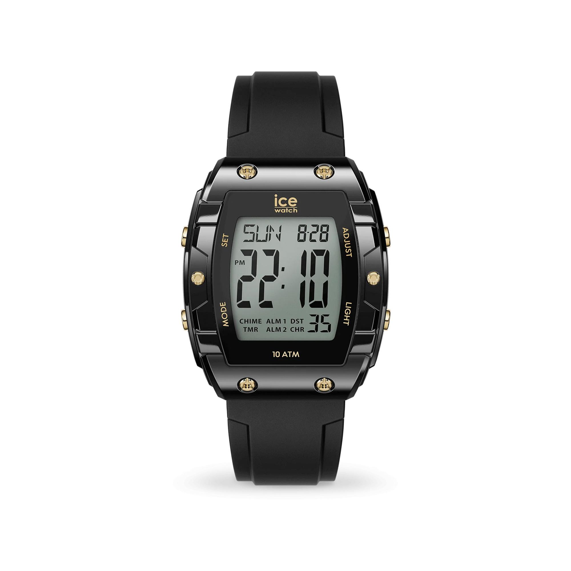 L'ICE digit boliday - Black Gold combina l'eleganza del nero con un tocco d'oro per un look retro-futuristico. Il cinturino in silicone nero e la cassa dorata sono una combinazione audace e chic. Il display digitale facilita la lettura dell'ora e della data, offrendo una funzionalità moderna in un design ispirato al futuro. Grazie all'impermeabilità 10 ATM, può accompagnarvi in tutte le vostre avventure, anche in acqua, rimanendo fedele al suo look elegante e di tendenza.