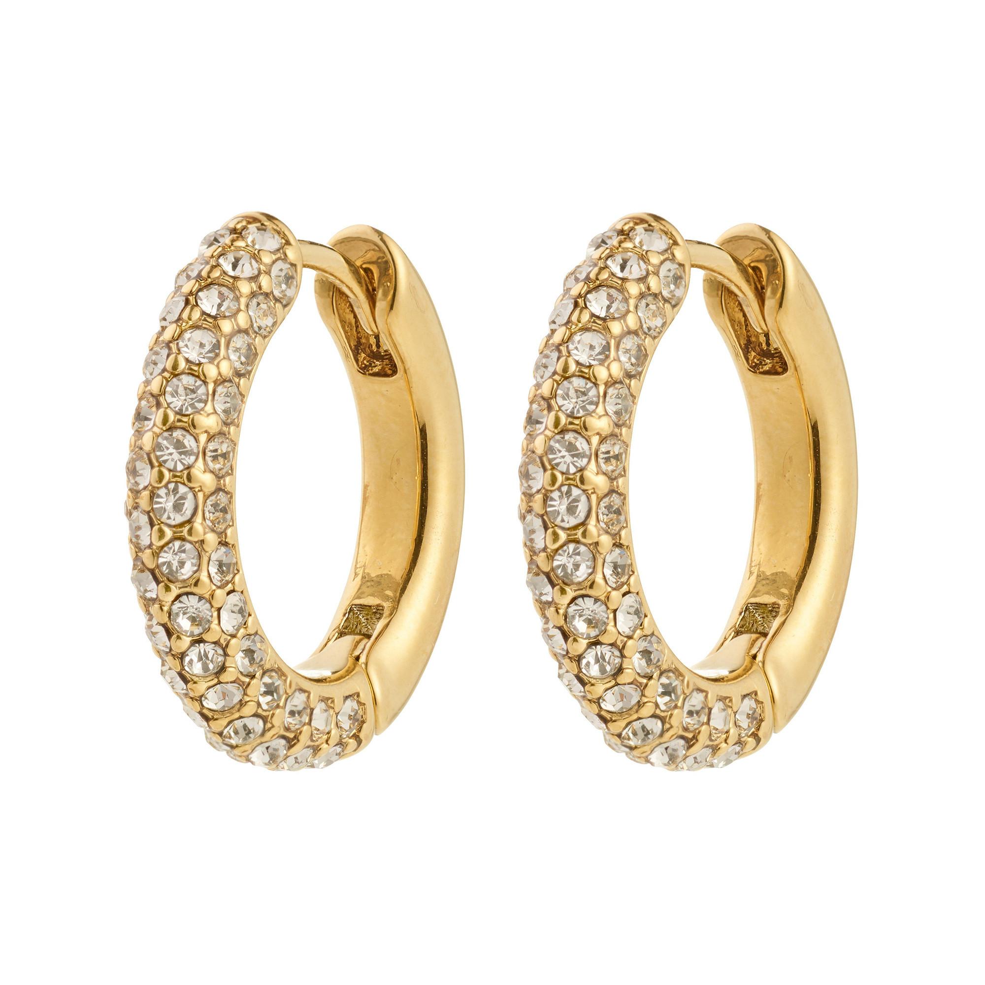 Brilla tutto il giorno, scintilla tutta la notte! Hoop medi placcati oro, decorati con scintillanti cristalli Preciosa, che aggiungono un tocco di lusso discreto al tuo look. Perfetti per outfit dal giorno alla sera – dona un tocco elegante ai tuoi look basic o aggiungi glamour e brillantezza per un evento serale. Grazie al pratico fermaglio a clic, sono comodi e facili da indossare. I tuoi nuovi hoop preferiti per ogni occasione! Resistenti all’acqua e realizzati al 97% con materiali riciclati – moda con responsabilità.