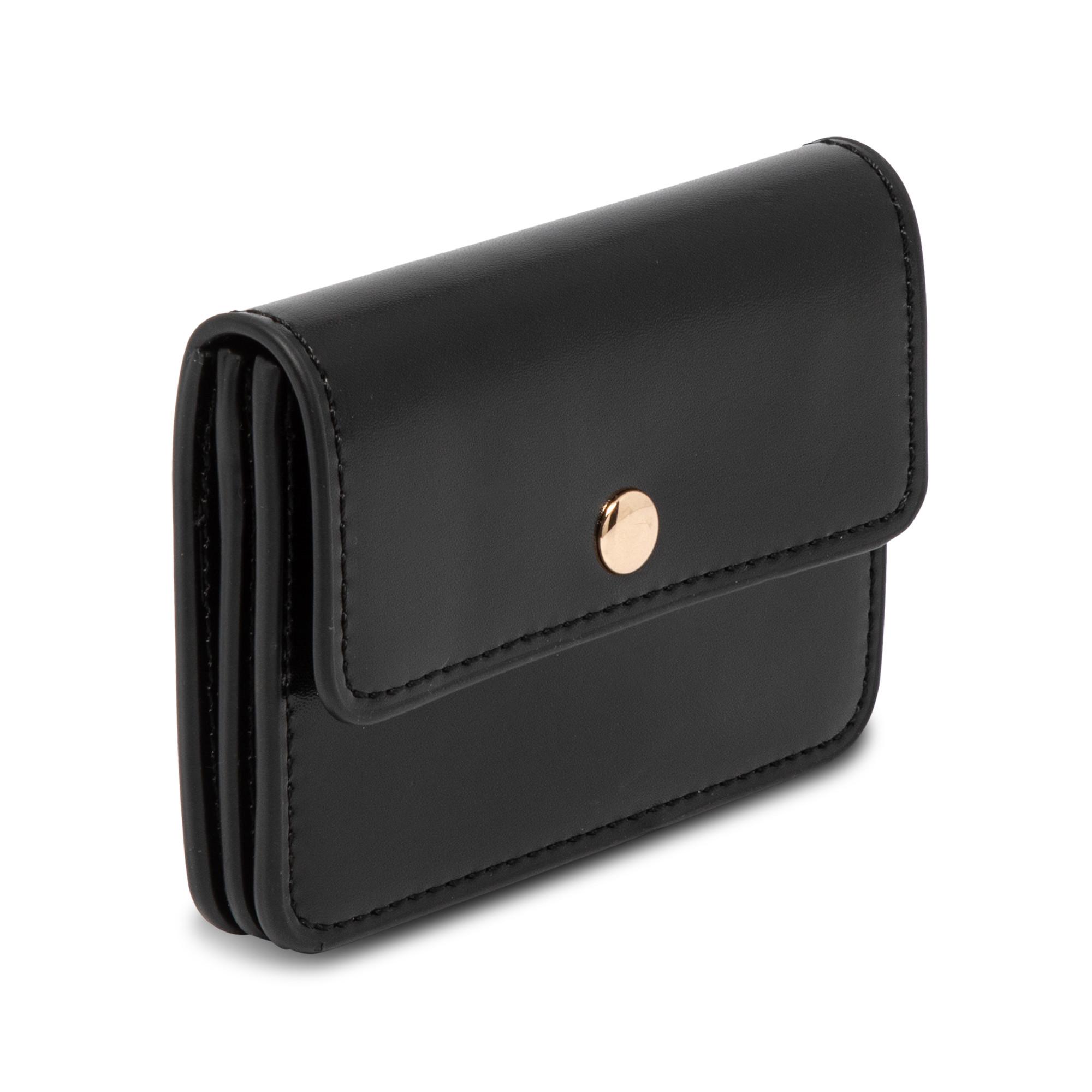 Questo pratico portafoglio dal formato minuscolo dispone di tre tasche per riporre tutti gli oggetti essenziali. Questo accessorio sobrio è realizzato in pelle sintetica liscia e si chiude con un bottone a pressione.