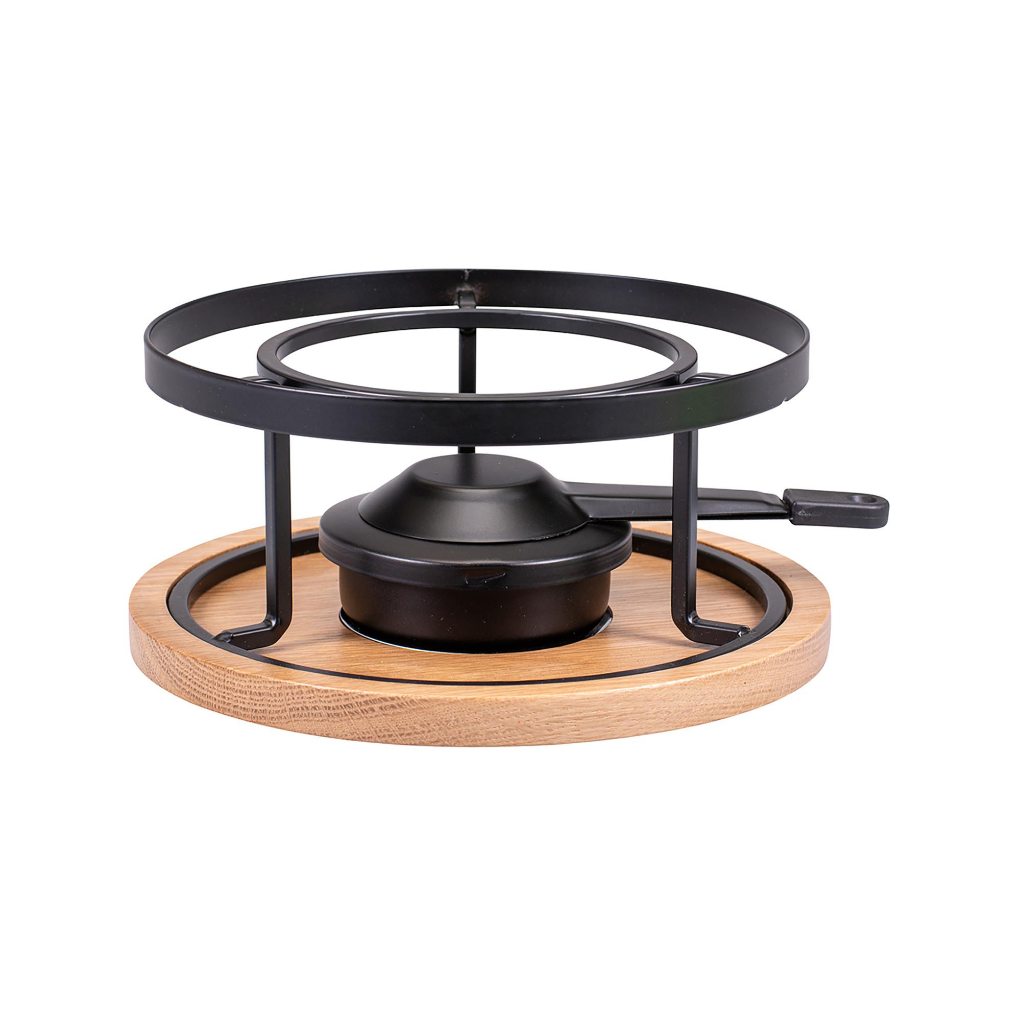 Il rechaud in stile lineare è adatto a tutti i caquelon e alle pentole smaltate con diametro di 20 cm. Il sottopiatto in legno di quercia è particolarmente accattivante. Il bruciatore regolabile a 8 fori di Kadastar garantisce una potenza di combustione ottimale.