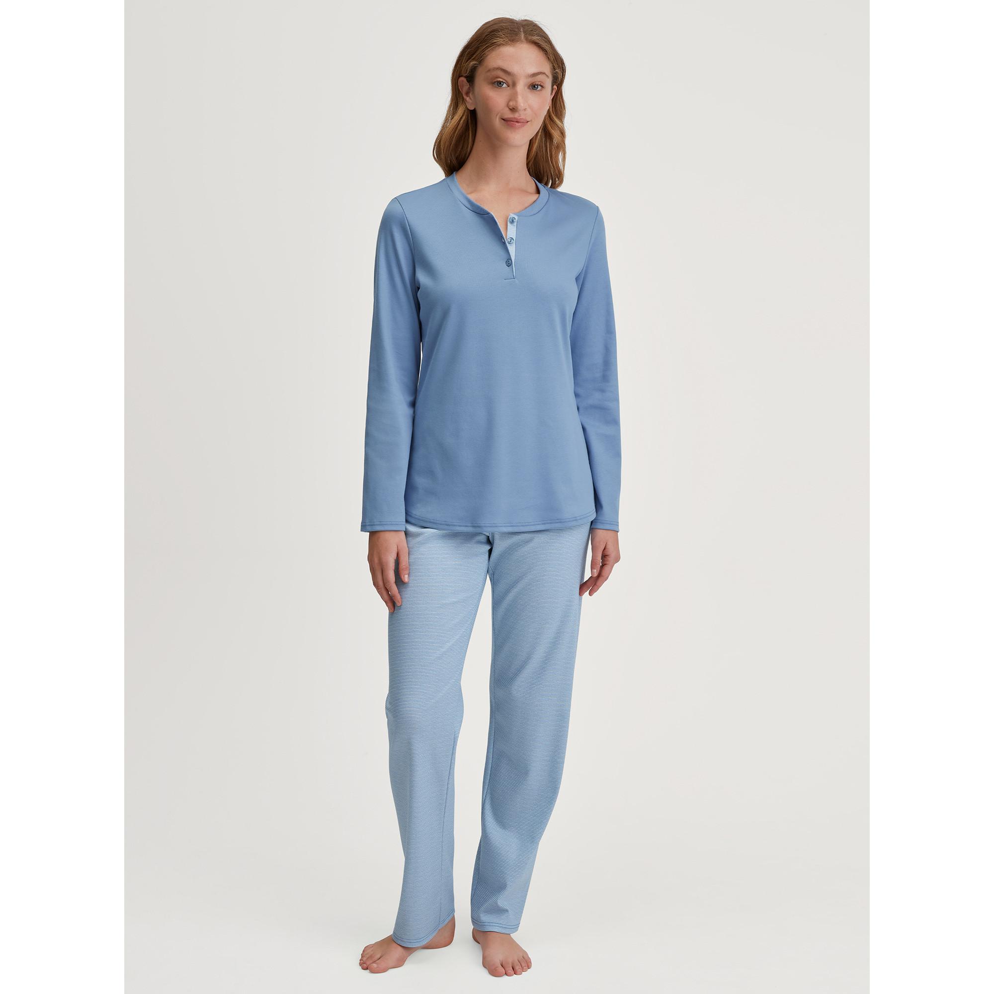 Questo pigiama lungo offre comfort e stile per serate rilassanti. La parte superiore presenta un design classico con abbottonatura, mentre i pantaloni sono adornati con un affascinante motivo a righe, aggiungendo un tocco di eleganza all'abbigliamento da casa.