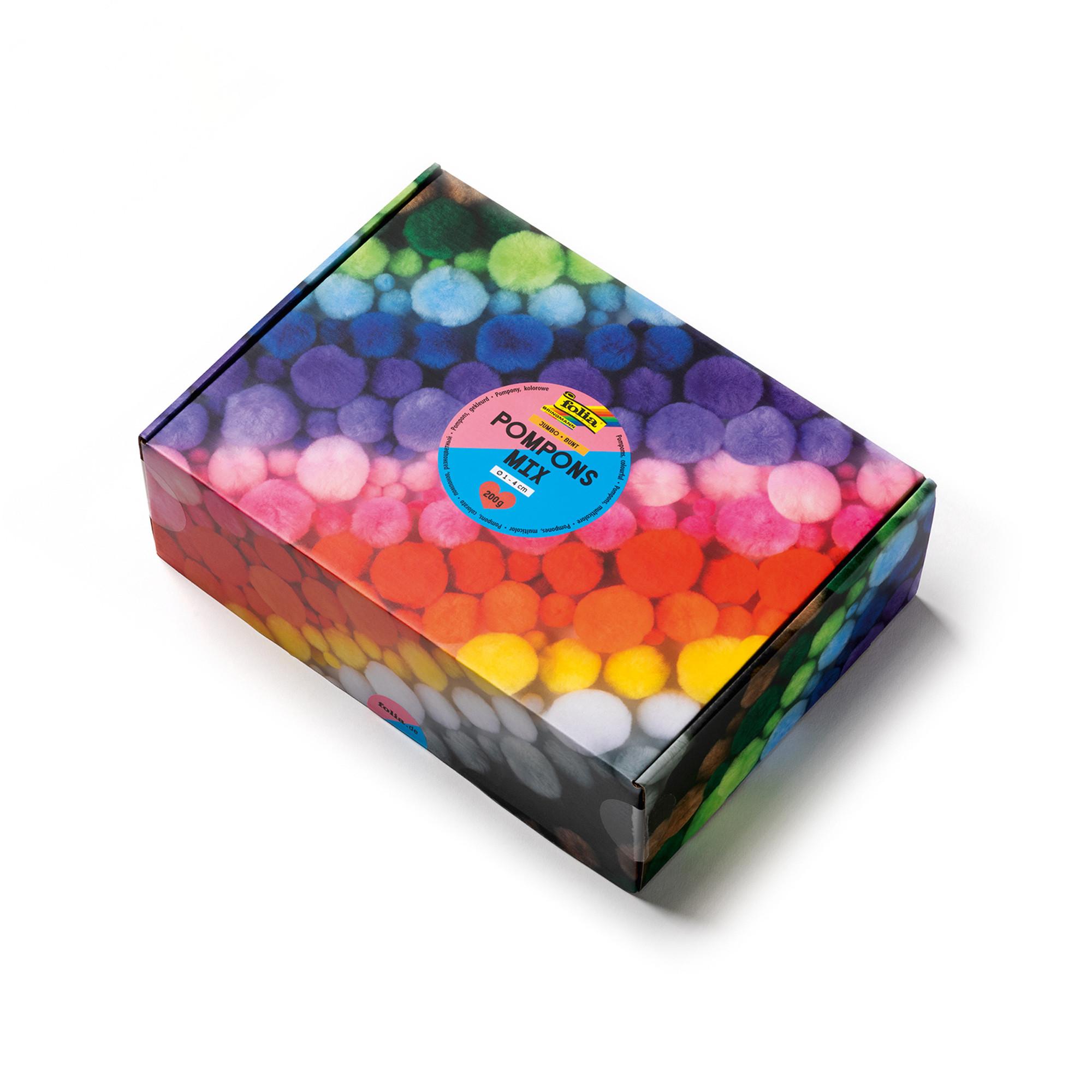 Il Pompons Mix Jumbo colorati di folia, in una pratica scatola, include pompon di diversi colori e dimensioni. Ideali per creare, decorare e dare spazio alla fantasia.