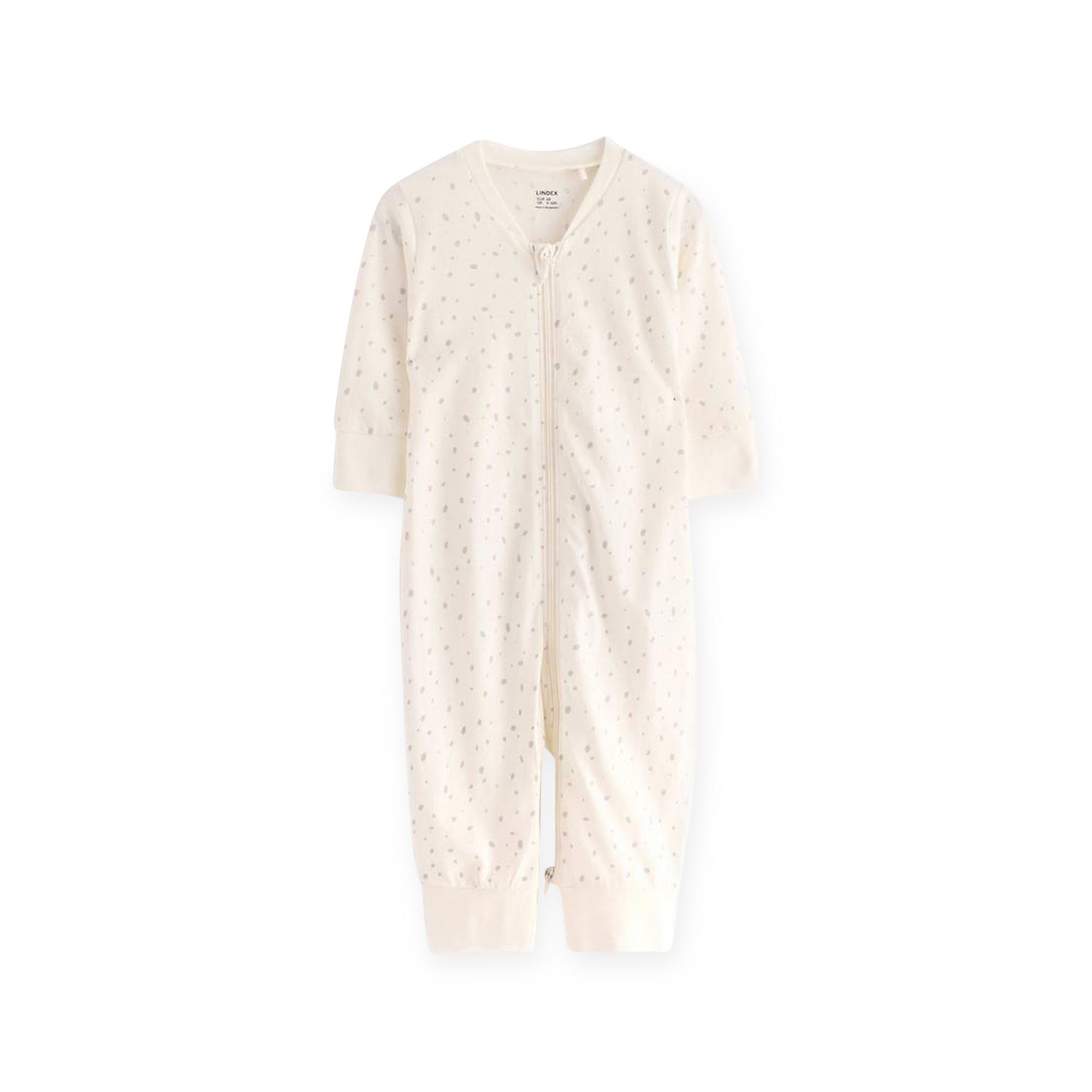 Questo pigiama in morbido cotone garantisce un comfort avvolgente con maniche e gambe lunghe, mentre la pratica cerniera a doppio senso rende i cambi del pannolino molto più semplici. Il motivo all-over e i polsini ripiegabili aggiungono funzionalità e un tocco adorabile.
