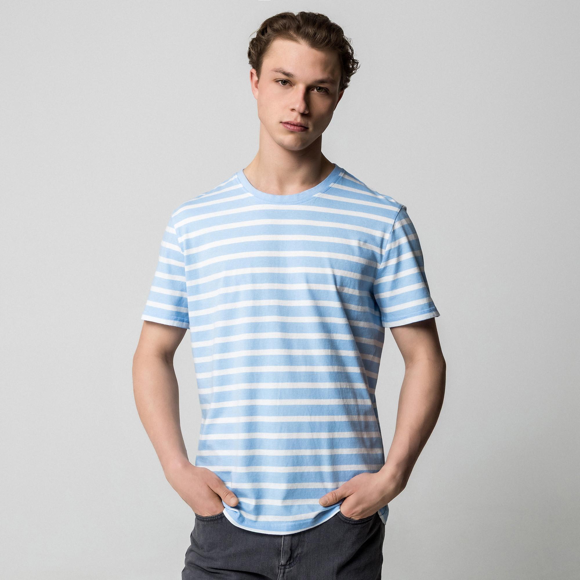 Questa T-shirt a maniche corte presenta un classico girocollo e un vivace motivo a righe. Il design Regular Fit offre comfort, rendendola un'aggiunta versatile a qualsiasi guardaroba.