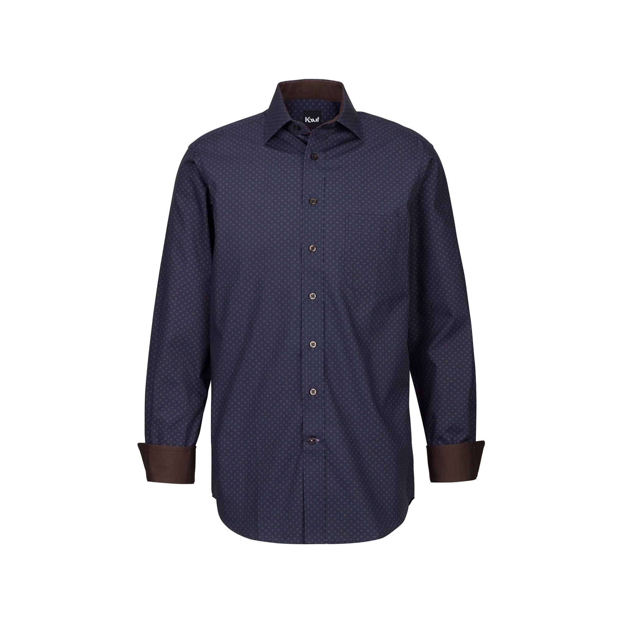 Questa camicia a maniche lunghe presenta una vestibilità regolare, offrendo una silhouette comoda e classica. Il design include una sottile stampa minimale marrone su tutto il tessuto, aggiungendo un tocco di raffinatezza. Le camicie del modello Pisa sono tutte realizzate con un taglio dritto classico e collaudato, in Regular Fit e in 100% cotone raffinato di qualità Kauf. La trama popeline è particolarmente adatta per la stampa minimale liscia su sfondo blu scuro opaco. Questa camicia Pisa con colletto New Kent è adatta per completare un outfit business o per occasioni formali. I contrasti di colore su colletto e polsini aggiungono ulteriori accenti. Grazie al cotone delicato sulla pelle, questa camicia stampata è anche facile da curare e rimane senza pieghe anche dopo un uso prolungato.