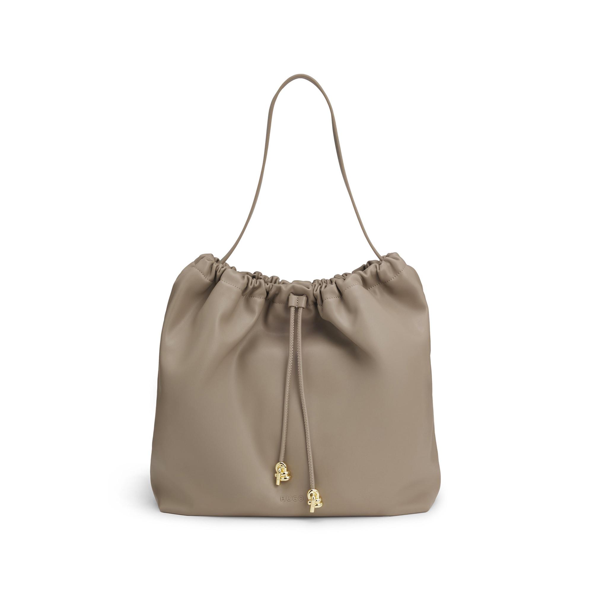 La borsa a tracolla “Millie” di HUGO RED dona eleganza con dettagli dorati e logo in rilievo. Il moderno laccio a coulisse crea una silhouette casual e funzionale. Realizzata in poliuretano riciclato – raffinata, sostenibile e perfetta per ogni look.