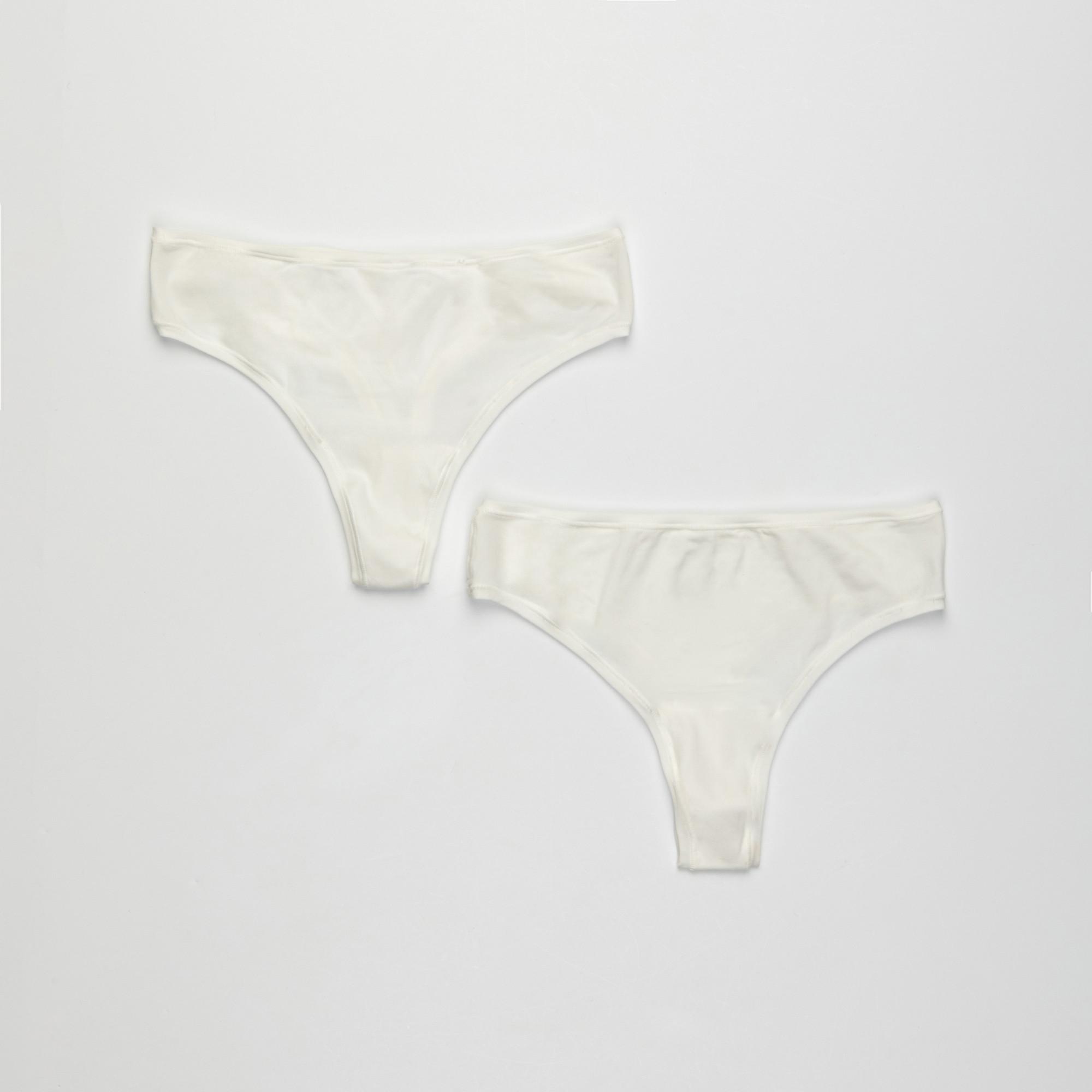 Questo duopack offre due comodi perizomi string, progettati per una vestibilità liscia e discreta sotto i vestiti. Il design minimalista garantisce comfort e versatilità per l'uso quotidiano.