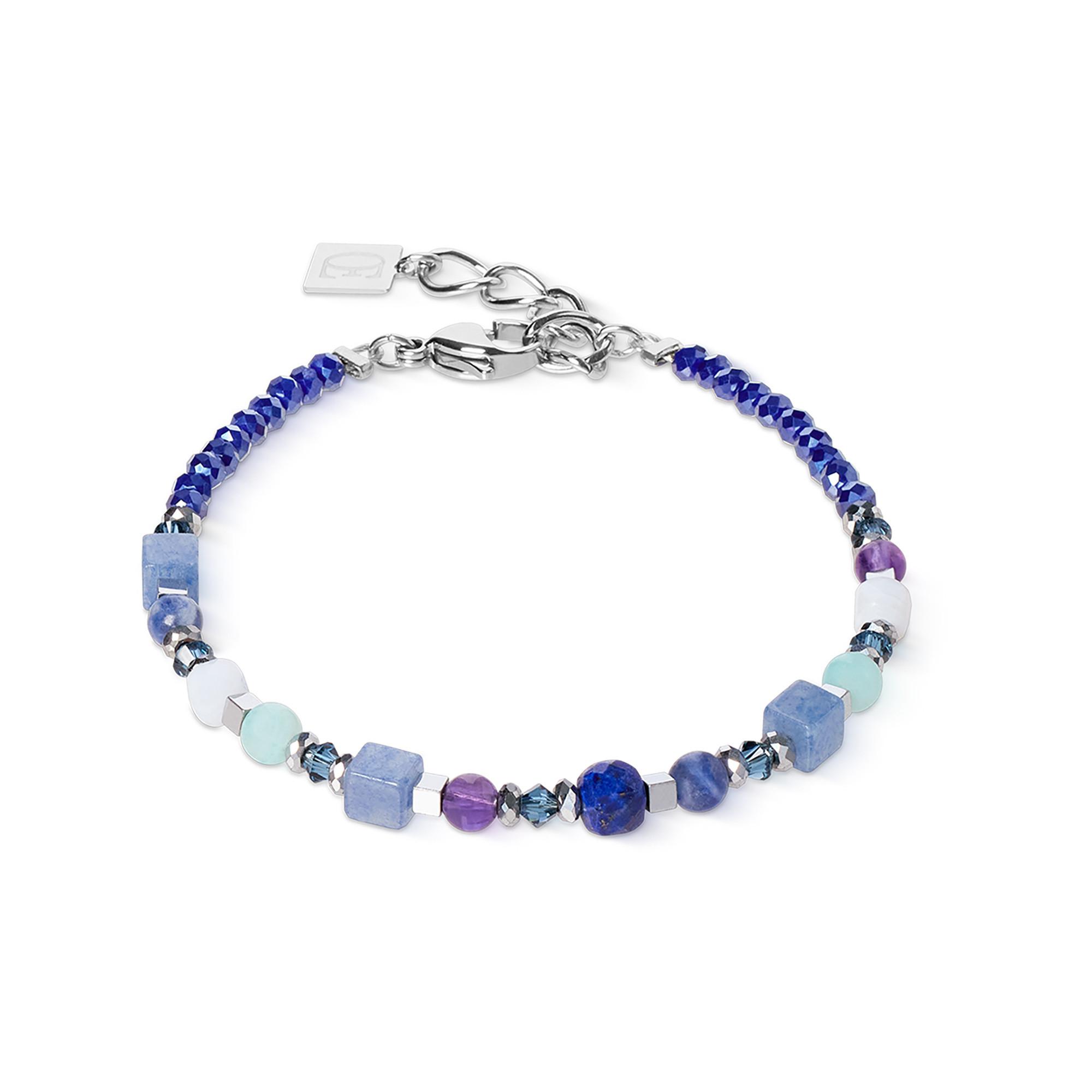 Il bracciale Shape Mix Spikes Blue Moon firmato Coeur de Lion combina lapislazzuli, amazzonite, calcedonio, avventurina blu, sodalite e agata con cristalli Swarovski® sfaccettati in un armonioso gioco di colori dal blu chiaro all'intenso crepuscolo futuro. Le differenze naturali delle pietre rendono ogni bracciale unico e conferiscono al gioiello fatto a mano un'eleganza moderna. Diverse tonalità di blu per accenti espressivi Combinazione di pietre preziose e cristalli scintillanti Consegna in astuccio di design con certificato di autenticità
